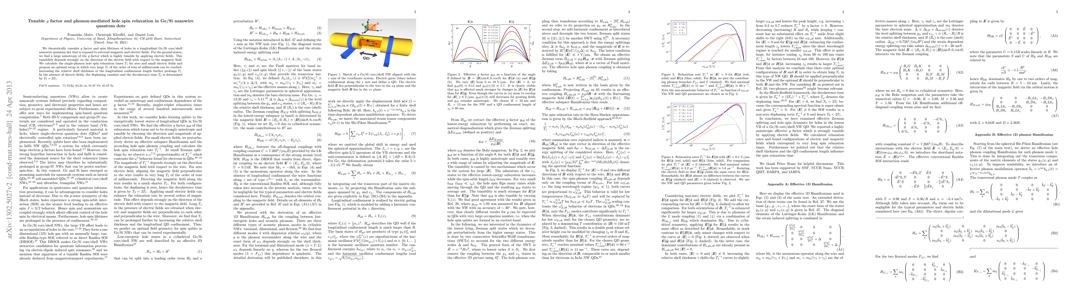 This paper theoretically investigates the tunable g factor and phonon-mediated hole spin relaxation in Ge/Si nanowire quantum dots. It finds a highly tunable g factor anisotropy under electric and magnetic fields, and proposes a setup achieving long spin lifetimes of tens of milliseconds by optimizing shell thickness and confinement length.