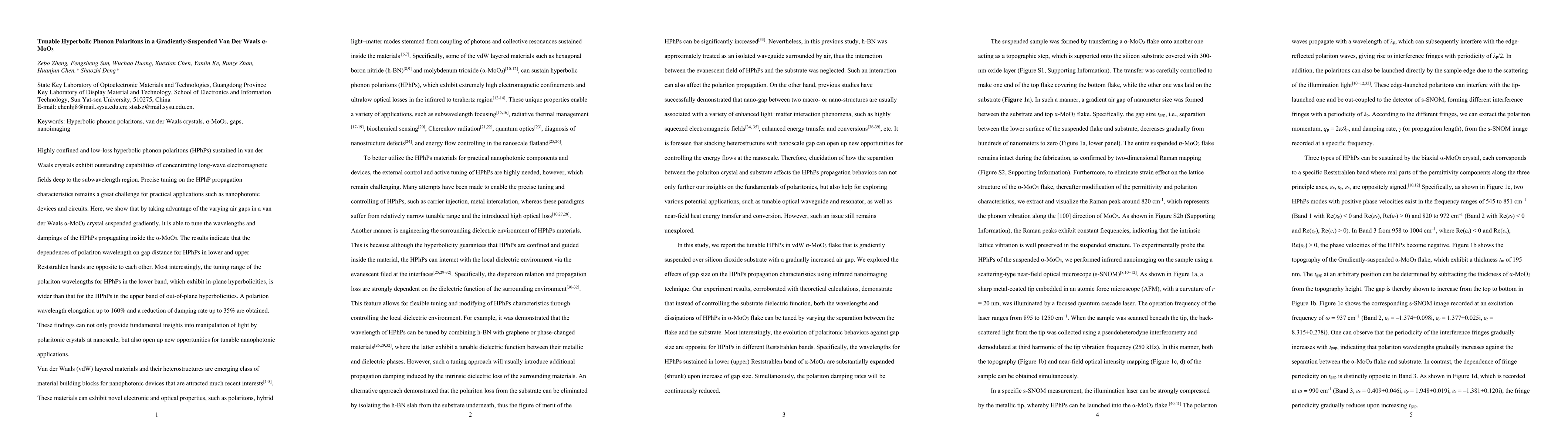 This paper demonstrates tunable hyperbolic phonon polaritons (HPhPs) in gradiently-suspended van der Waals α-MoO3 crystals, achieving a polariton wavelength elongation of up to 160% and a reduction in damping rate by 35%. The study reveals opposite wavelength dependencies on gap distance for lower and upper Reststrahlen bands, providing new insights and potential for tunable nanophotonic applications.