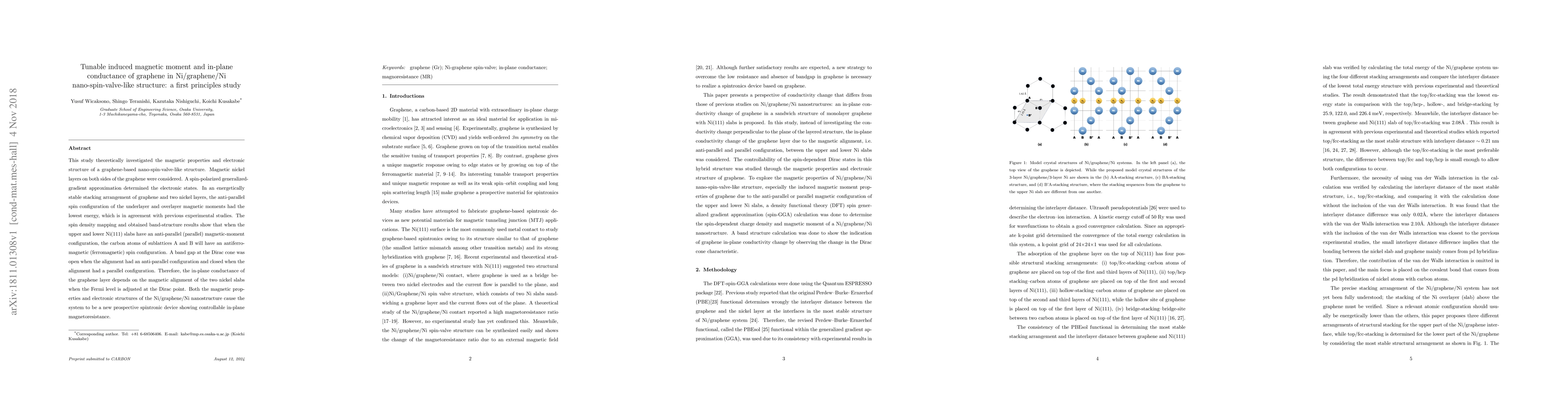 This study uses first-principles calculations to explore the magnetic and electronic properties of a graphene-based nano-spin-valve, revealing tunable in-plane conductance dependent on the magnetic alignment of nickel layers, making it a promising spintronic device.