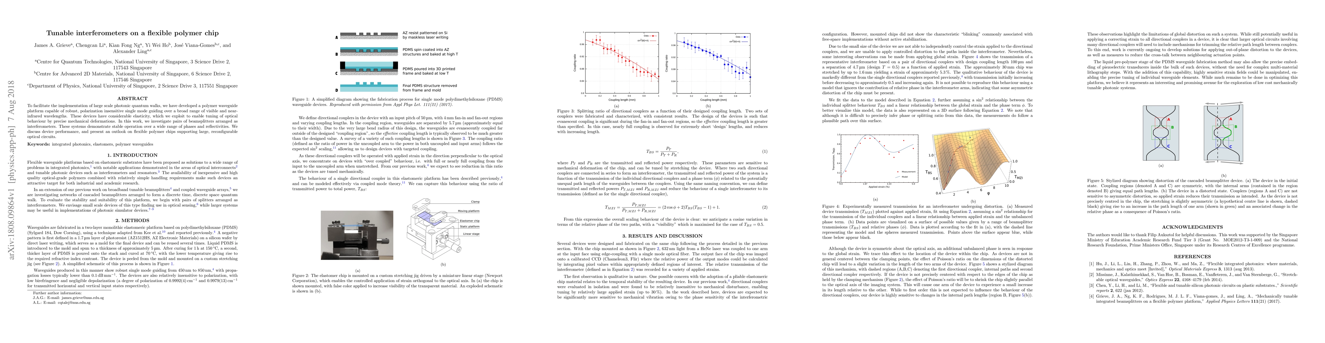 The research presents a flexible polymer chip platform for photonic quantum walks, enabling single mode guiding across visible and near-infrared wavelengths. Mechanical deformation is used to tune optical behavior, with stable operation of interferometers demonstrated over varying phases and reflectivities, paving the way for large-scale, reconfigurable optical circuits.