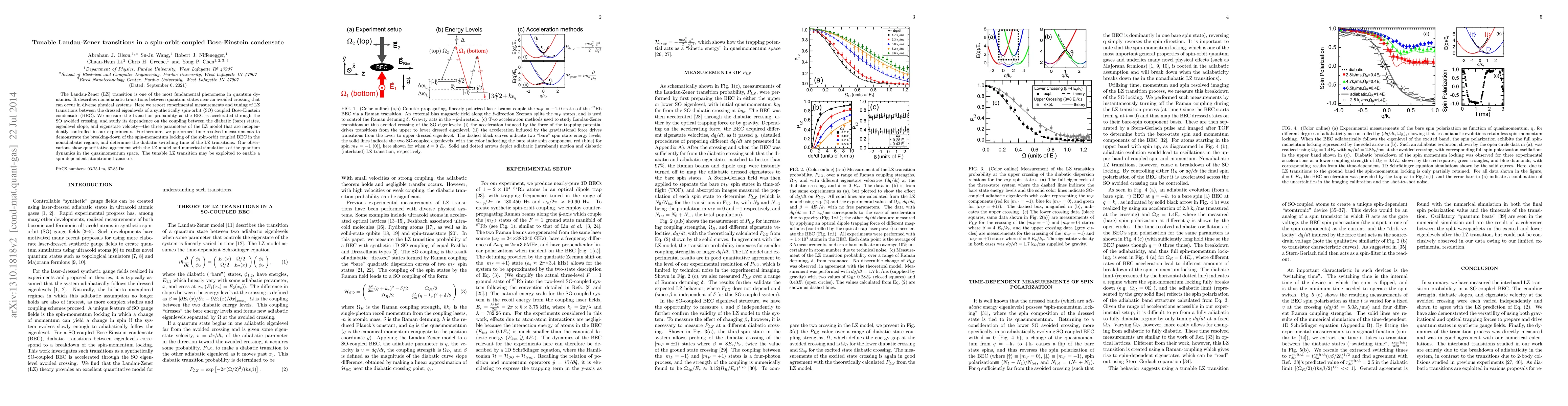 This paper reports experimental tuning of Landau-Zener transitions in a spin-orbit coupled Bose-Einstein condensate, demonstrating control over transition probability and diabatic switching time. The findings align with theoretical models and suggest potential applications in spin-dependent atomtronic devices.