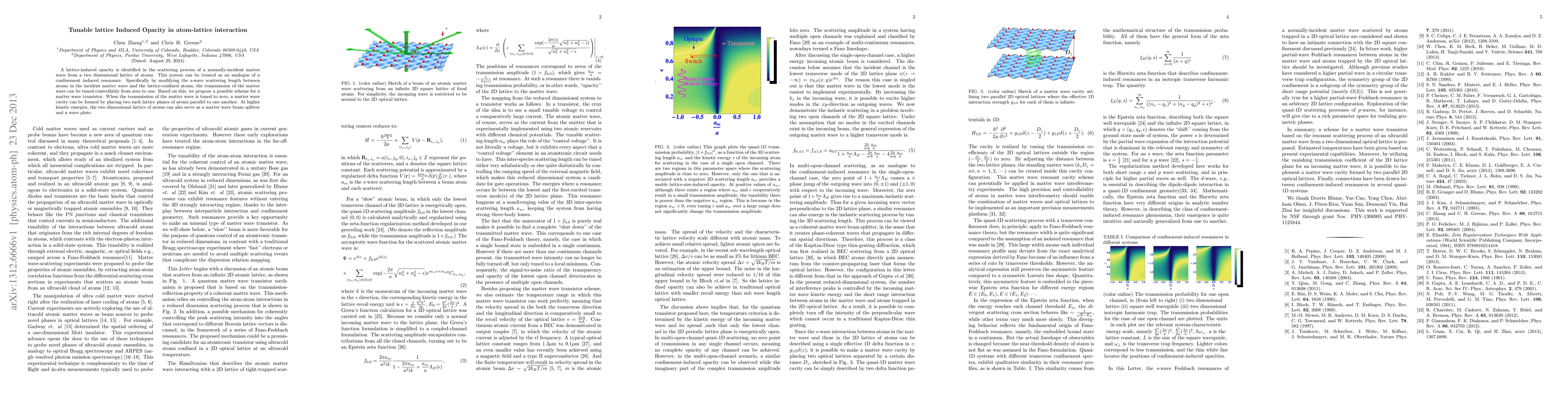 A lattice-induced opacity is identified in the scattering process of a normally-incident matter wave from a two dimensional lattice of atoms. This system can be treated as an analogue of a confinement induced resonance. Specifically by modifying the s-wave scattering length between atoms in the incident matter wave and the lattice-confined atoms, the transmission of the matter wave can be tuned controllably from zero to one. Based on this, we propose a possible scheme for a matter wave transistor. When the transmission of the matter wave is tuned to zero, a matter wave cavity can be formed by placing two such lattice planes of atoms parallel to one another. At higher kinetic energies, the two dimensional lattice of atoms can also serve as a matter wave beam splitter and a wave plate.