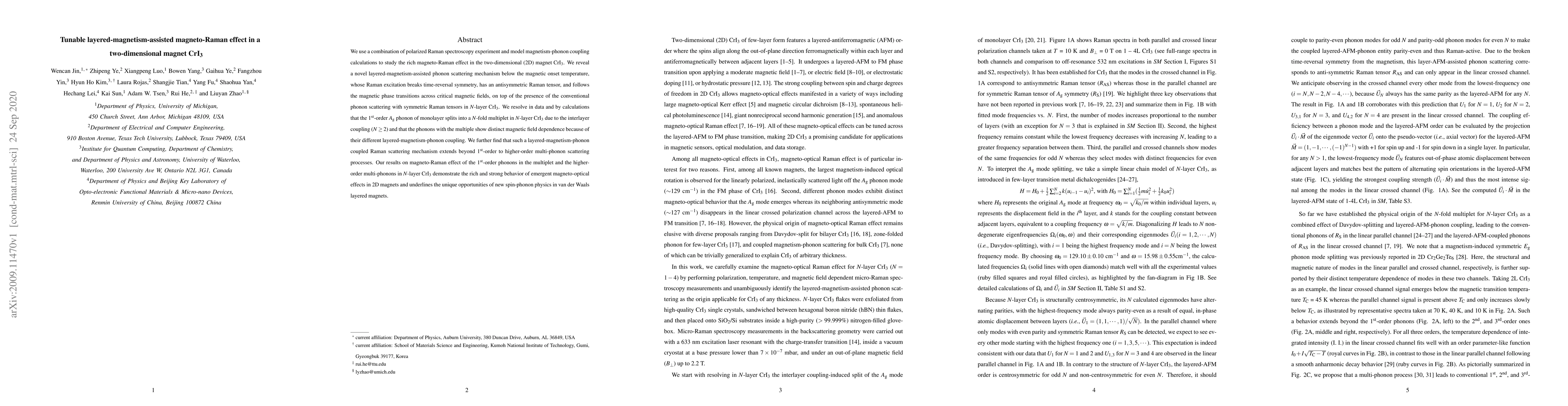 We use a combination of polarized Raman spectroscopy experiment and model magnetism-phonon coupling calculations to study the rich magneto-Raman effect in the two-dimensional (2D) magnet $\mathrm{CrI_3}$. We reveal a novel layered-magnetism-assisted phonon scattering mechanism below the magnetic onset temperature, whose Raman excitation breaks time-reversal symmetry, has an antisymmetric Raman tensor, and follows the magnetic phase transitions across critical magnetic fields, on top of the presence of the conventional phonon scattering with symmetric Raman tensors in $N$-layer $\mathrm{CrI_3}$. We resolve in data and by calculations that the 1st-order $A_g$ phonon of monolayer splits into a $N$-fold multiplet in $N$-layer $\mathrm{CrI_3}$ due to the interlayer coupling ($N$>=2) and that the phonons with the multiple show distinct magnetic field dependence because of their different layered-magnetism-phonon coupling. We further find that such a layered-magnetism-phonon coupled Raman scattering mechanism extends beyond 1st-order to higher-order multi-phonon scattering processes. Our results on magneto-Raman effect of the 1st-order phonons in the multiplet and the higher-order multi-phonons in $N$-layer $\mathrm{CrI_3}$ demonstrate the rich and strong behavior of emergent magneto-optical effects in 2D magnets and underlines the unique opportunities of new spin-phonon physics in van der Waals layered magnets.