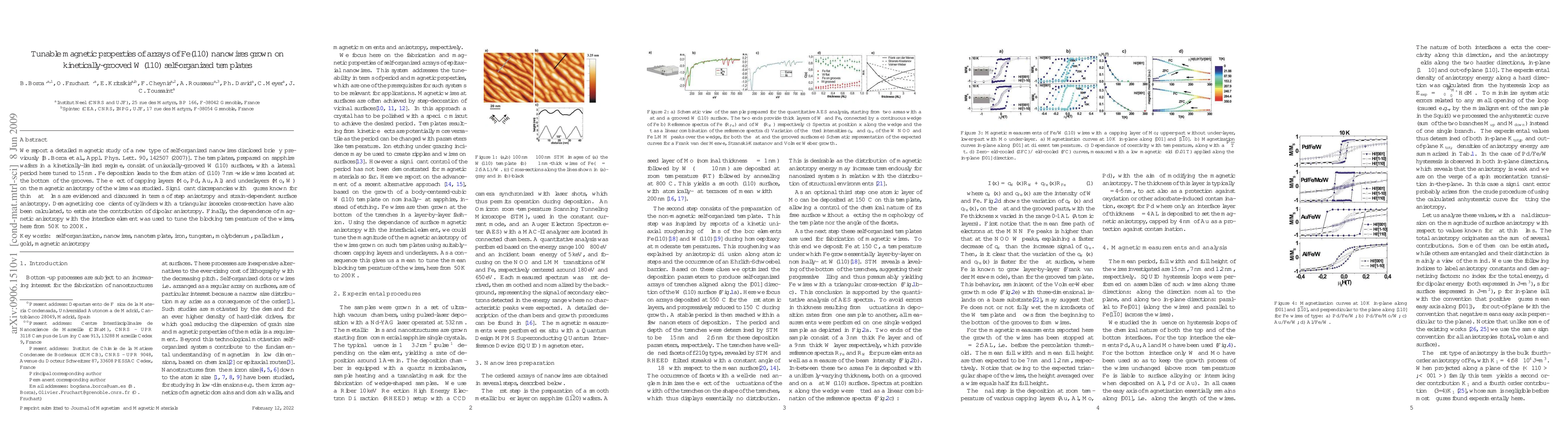 This study investigates the tunable magnetic properties of Fe(110) nanowires grown on kinetically-grooved W(110) templates, revealing significant discrepancies with thin flat film magnetic anisotropy due to step anisotropy and strain effects. The blocking temperature of the wires was tuned from 50K to 200K by varying capping and underlayer materials.