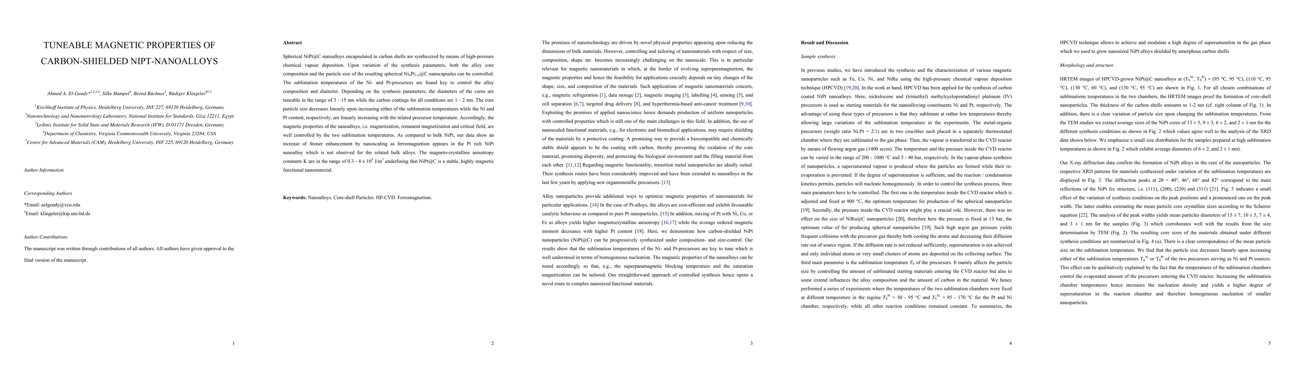 This paper reports the synthesis of tunable NiPt@C nanoalloys with controlled core composition and size via high-pressure chemical vapour deposition, showing that the magnetic properties, including magnetization and critical field, are influenced by the alloy's core size and composition, which are determined by the sublimation temperatures of the Ni and Pt precursors. The study reveals enhanced ferromagnetism in the Pt-rich nanoalloys compared to bulk NiPt.