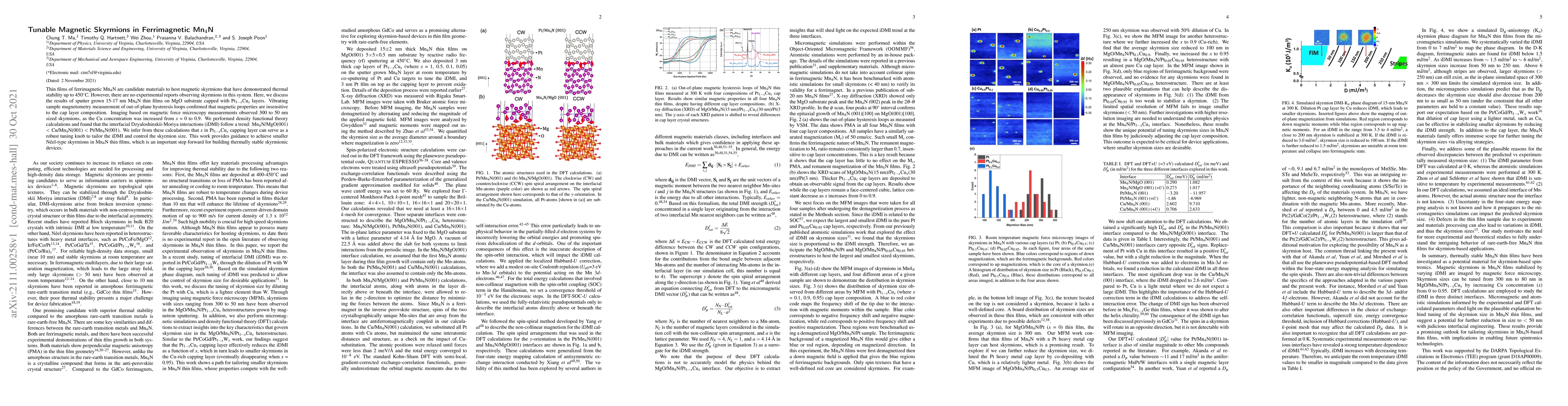 Researchers discovered tunable magnetic skyrmions in ferrimagnetic Mn$_4$N thin films using Pt$_{1-x}$Cu$_x$ capping layers, enabling control over skyrmion size through composition.
