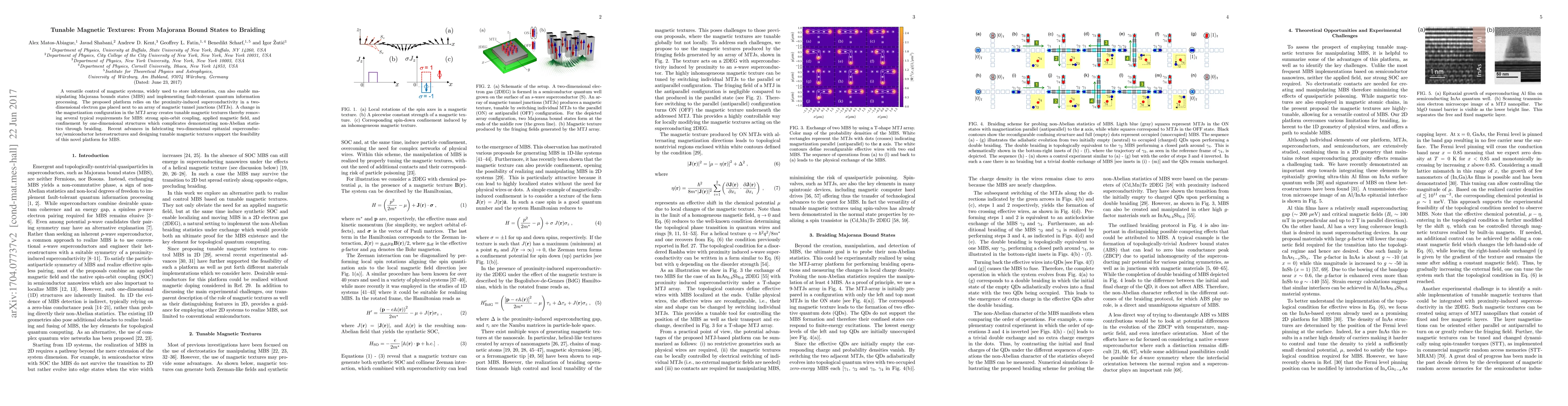 A versatile control of magnetic systems, widely used to store information, can also enable manipulating Majorana bounds states (MBS) and implementing fault-tolerant quantum information processing. The proposed platform relies on the proximity-induced superconductivity in a two-dimensional electron gas placed next to an array of magnetic tunnel junctions (MTJs). A change in the magnetization configuration in the MTJ array creates tunable magnetic textures thereby removing several typical requirements for MBS: strong spin-orbit coupling, applied magnetic field, and confinement by one-dimensional structures which complicates demonstrating non-Abelian statistics through braiding. Recent advances in fabricating two-dimensional epitaxial superconductor/semiconductor heterostructures and designing tunable magnetic textures support the feasibility of this novel platform for MBS.