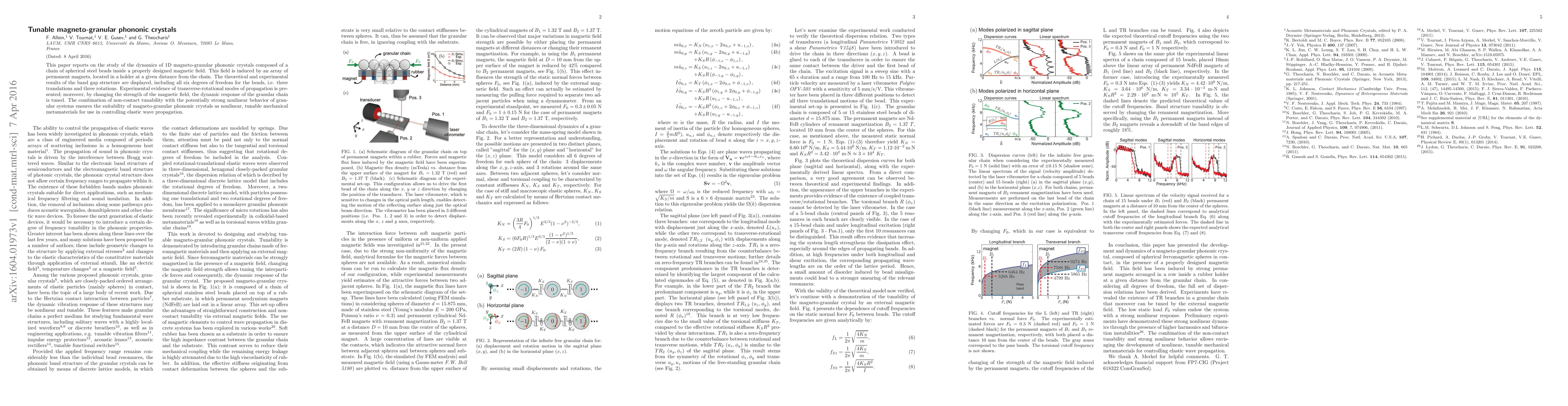 The development of a magneto-granular phononic crystal with tunable TR branches.