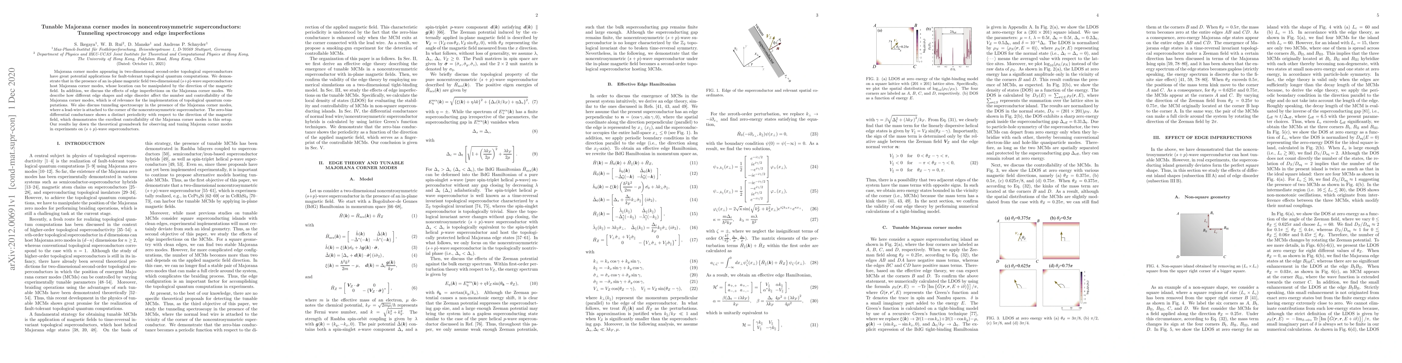 This research demonstrates the tunability of Majorana corner modes in ($s+p$)-wave superconductors using in-plane magnetic fields and explores how edge imperfections influence these modes. The study also shows that tunneling spectroscopy reveals a zero-bias conductance periodicity, indicating controllable Majorana modes essential for topological quantum computing applications.