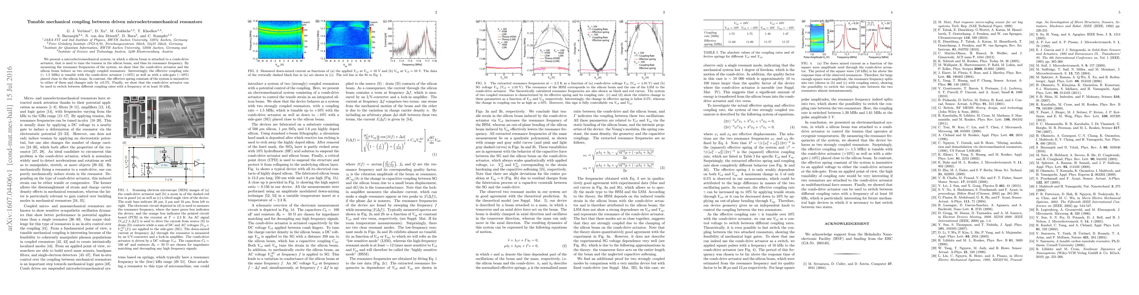 We present a microelectromechanical system, in which a silicon beam is attached to a comb-drive actuator, that is used to tune the tension in the silicon beam, and thus its resonance frequency. By measuring the resonance frequencies of the system, we show that the comb-drive actuator and the silicon beam behave as two strongly coupled resonators. Interestingly, the effective coupling rate (~ 1.5 MHz) is tunable with the comb-drive actuator (+10%) as well as with a side-gate (-10%) placed close to the silicon beam. In contrast, the effective spring constant of the system is insensitive to either of them and changes only by $\pm$ 0.5%. Finally, we show that the comb-drive actuator can be used to switch between different coupling rates with a frequency of at least 10 kHz.