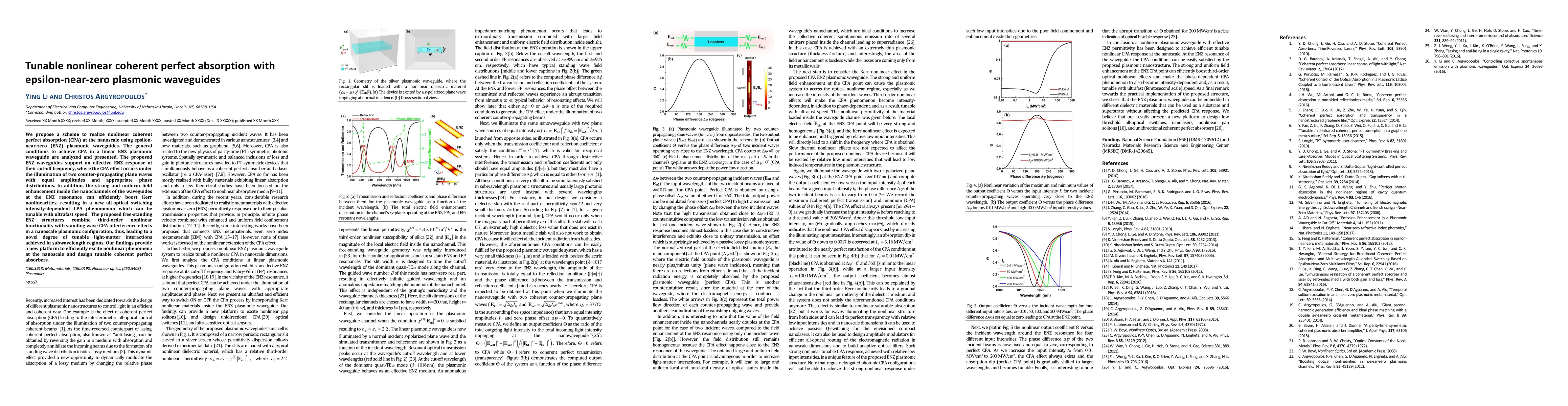 This research proposes a nanoscale scheme utilizing epsilon-near-zero (ENZ) plasmonic waveguides for tunable nonlinear coherent perfect absorption (CPA) through Kerr nonlinearities. The study highlights the effective ENZ response at cut-off frequency, which boosts ultrafast intensity-dependent CPA, offering a new platform for nanoscale light-matter interactions.