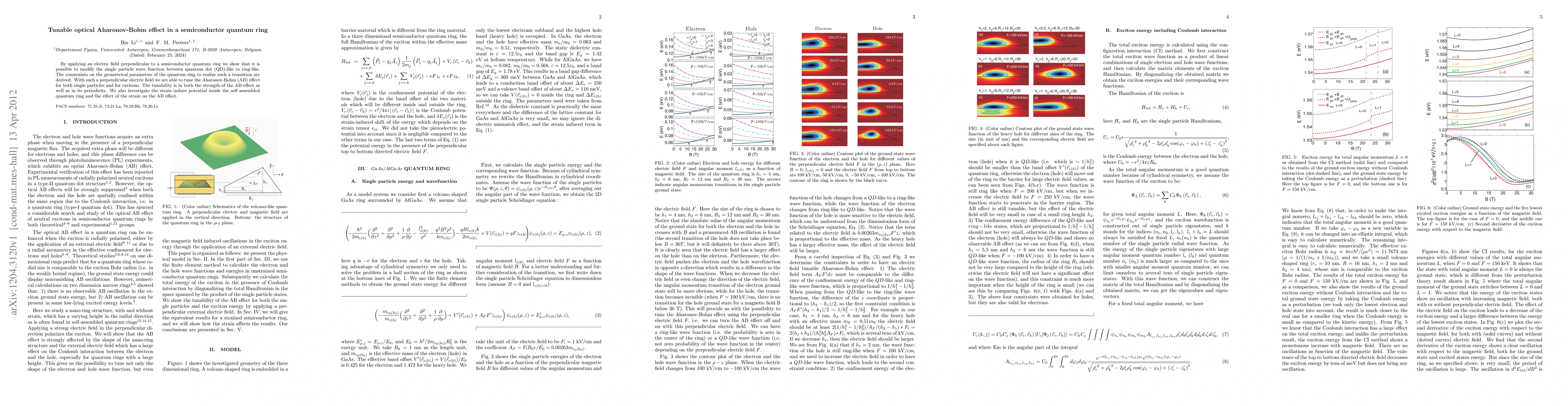 This research demonstrates the ability to modify wave functions in a semiconductor quantum ring using an electric field, transitioning from QD-like to ring-like. The study also reveals tunable Aharonov-Bohm effect strength and periodicity, along with investigating strain's impact on this effect.