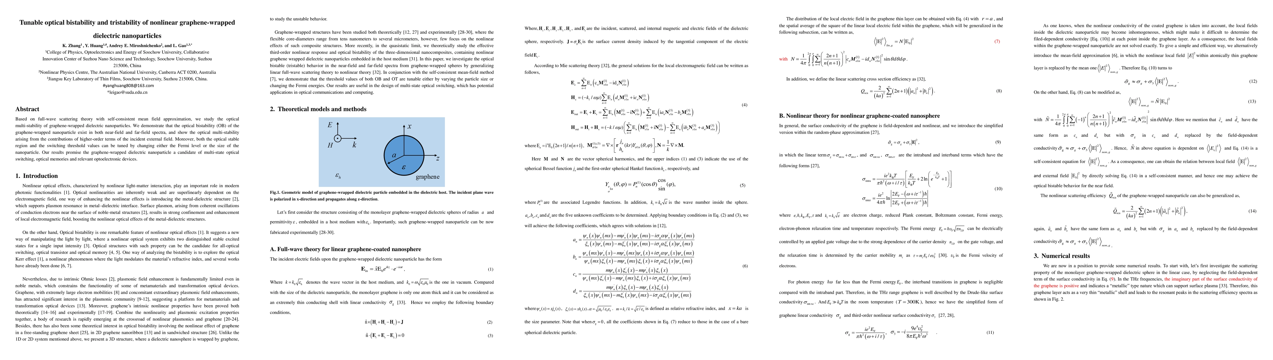 This study explores optical bistability and tristability in graphene-wrapped dielectric nanoparticles using full-wave scattering theory. It shows tunable optical stability through variations in Fermi level or nanoparticle size, suggesting potential applications in multi-state optical switches and memories.