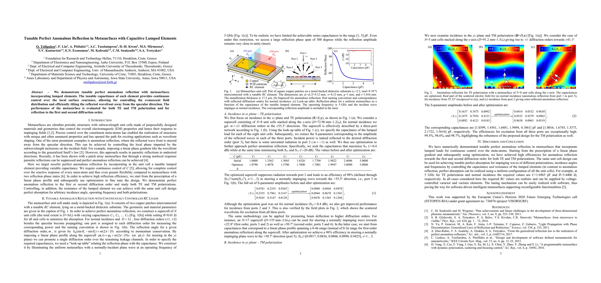 This research paper demonstrates tunable perfect anomalous reflection in metasurfaces using capacitive lumped elements, which allows for continuous control over local surface reactance, enabling precise manipulation of evanescent field distribution and reflected wavefronts. The metasurface's performance is tested for both TE and TM polarizations, as well as for first and second diffraction orders.