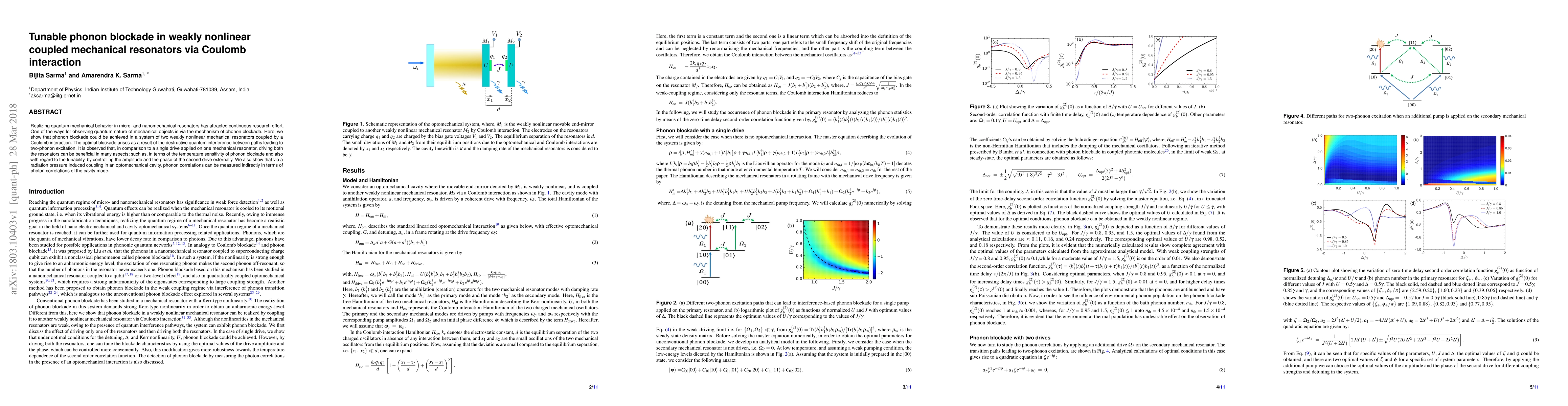 This paper demonstrates phonon blockade in weakly nonlinear coupled mechanical resonators through Coulomb interaction, showing that driving both resonators enhances temperature sensitivity and tunability. Additionally, it highlights that phonon correlations can be inferred via photon correlations in an optomechanical cavity.