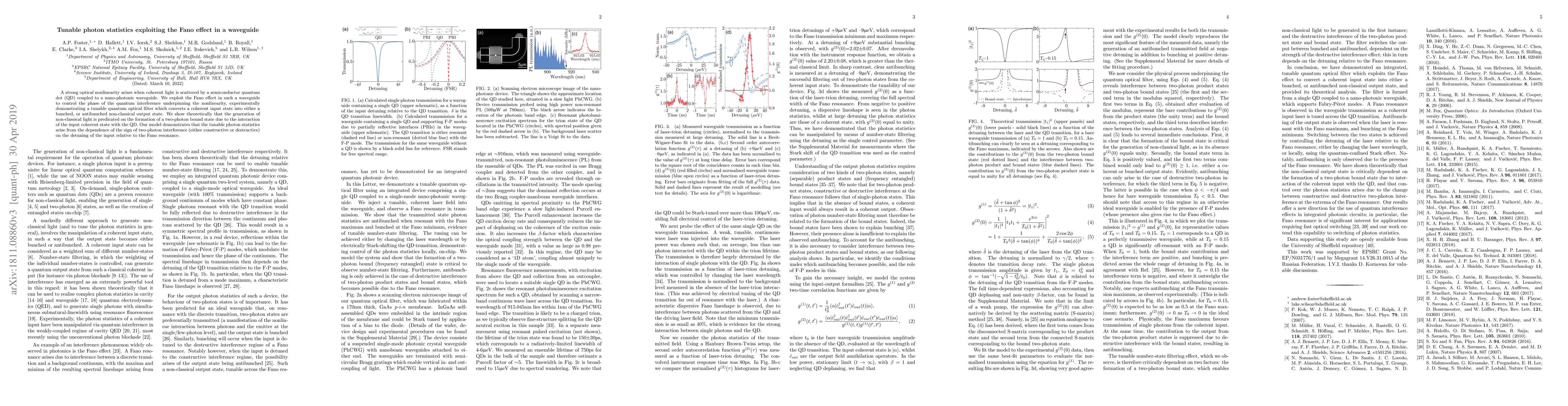 A strong optical nonlinearity arises when coherent light is scattered by a semiconductor quantumdot (QD) coupled to a nano-photonic waveguide. We exploit the Fano effect in such a waveguide to control the phase of the quantum interference underpinning the nonlinearity, experimentally demonstrating a tunable quantum optical filter which converts a coherent input state into either a bunched, or antibunched non-classical output state. We show theoretically that the generation of non-classical light is predicated on the formation of a two-photon bound state due to the interaction of the input coherent state with the QD. Our model demonstrates that the tunable photon statistics arise from the dependence of the sign of two-photon interference (either constructive or destructive) on the detuning of the input relative to the Fano resonance.