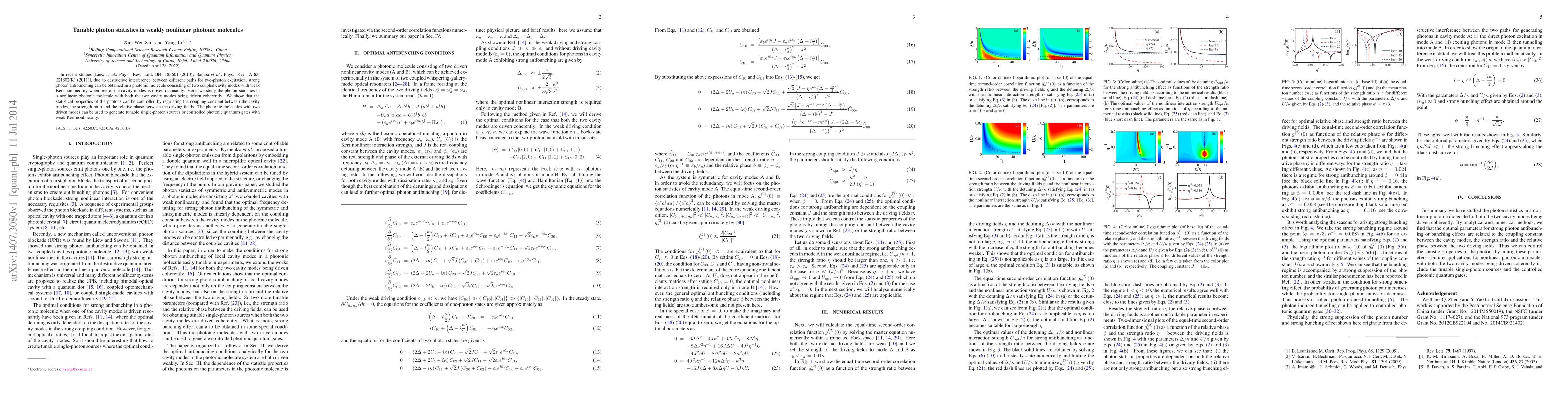 This paper investigates tunable photon statistics in weakly nonlinear photonic molecules where both cavity modes are driven coherently. The study reveals that photon antibunching and statistical properties can be controlled by adjusting the coupling constant, strength ratio, and phase difference between the driving fields, enabling the creation of tunable single-photon sources or photonic quantum gates.