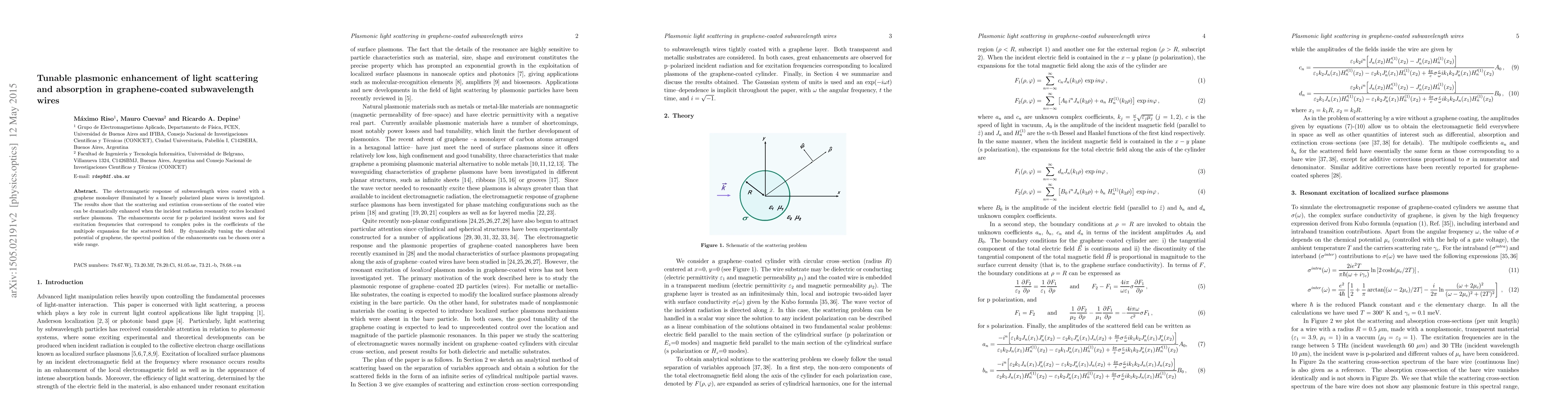 This paper investigates how graphene-coated subwavelength wires enhance light scattering and absorption through resonant excitation of localized surface plasmons. By tuning the graphene's chemical potential, the spectral position of the enhancements can be dynamically adjusted over a wide range.