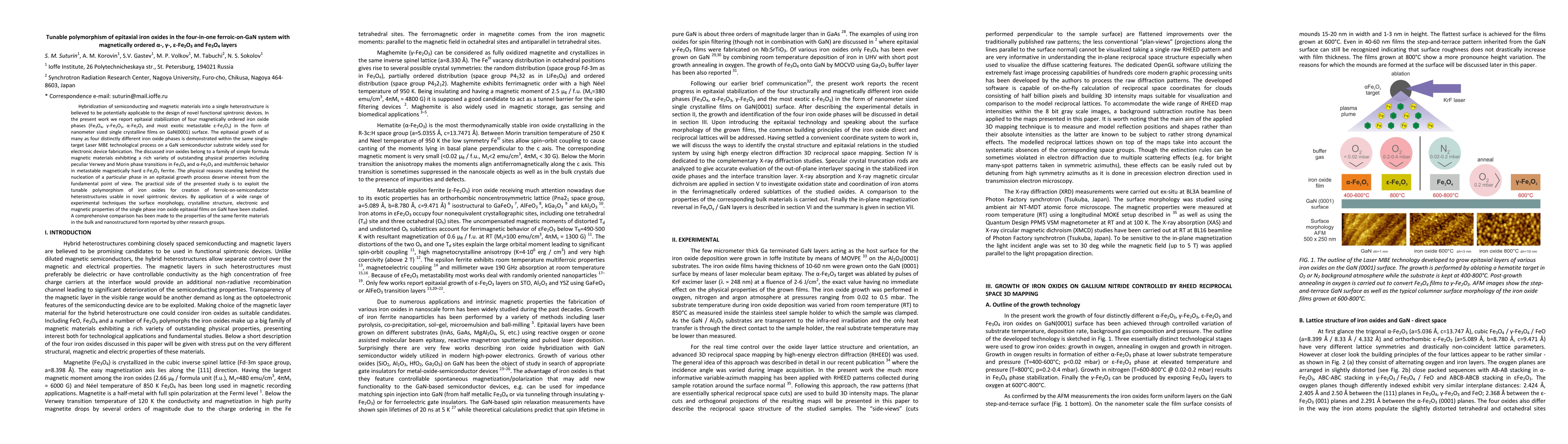 This paper explores the epitaxial growth of four distinct magnetically ordered iron oxide phases (Fe3O4, γ-Fe2O3, α-Fe2O3, and ε-Fe2O3) on GaN substrates using Laser MBE, highlighting their potential for novel spintronic devices. The study investigates the physical properties and phase nucleation mechanisms, comparing the epitaxial films' characteristics with bulk and nanostructured forms.