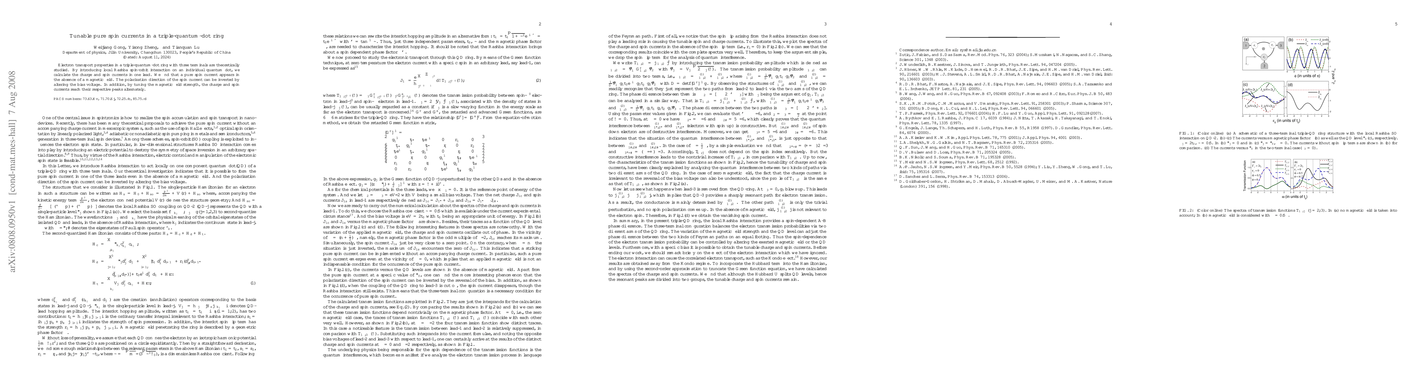 This paper investigates electron transport in a triple-quantum-dot ring, demonstrating the generation of a pure spin current without an external magnetic field. The spin current's polarization direction can be inverted by adjusting the bias voltage, and the system exhibits alternating peaks in charge and spin currents with varying magnetic field strength.