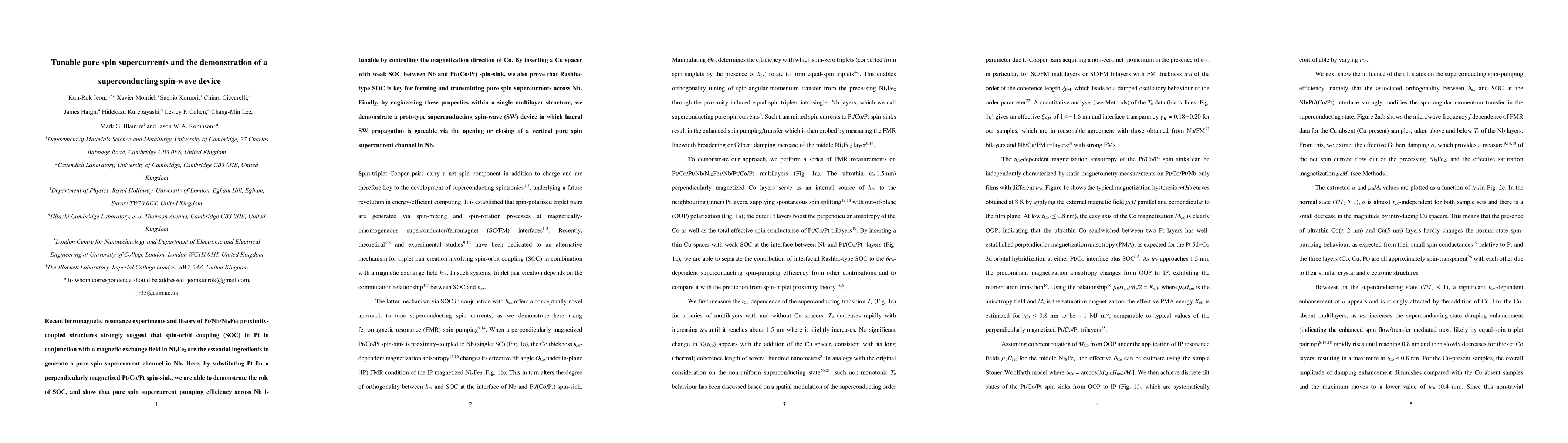 Recent ferromagnetic resonance experiments and theory of Pt/Nb/Ni8Fe2 proximity-coupled structures strongly suggest that spin-orbit coupling (SOC) in Pt in conjunction with a magnetic exchange field in Ni8Fe2 are the essential ingredients to generate a pure spin supercurrent channel in Nb. Here, by substituting Pt for a perpendicularly magnetized Pt/Co/Pt spin-sink, we are able to demonstrate the role of SOC, and show that pure spin supercurrent pumping efficiency across Nb is tunable by controlling the magnetization direction of Co. By inserting a Cu spacer with weak SOC between Nb and Pt/(Co/Pt) spin-sink, we also prove that Rashba type SOC is key for forming and transmitting pure spin supercurrents across Nb. Finally, by engineering these properties within a single multilayer structure, we demonstrate a prototype superconducting spin-wave (SW) device in which lateral SW propagation is gateable via the opening or closing of a vertical pure spin supercurrent channel in Nb.