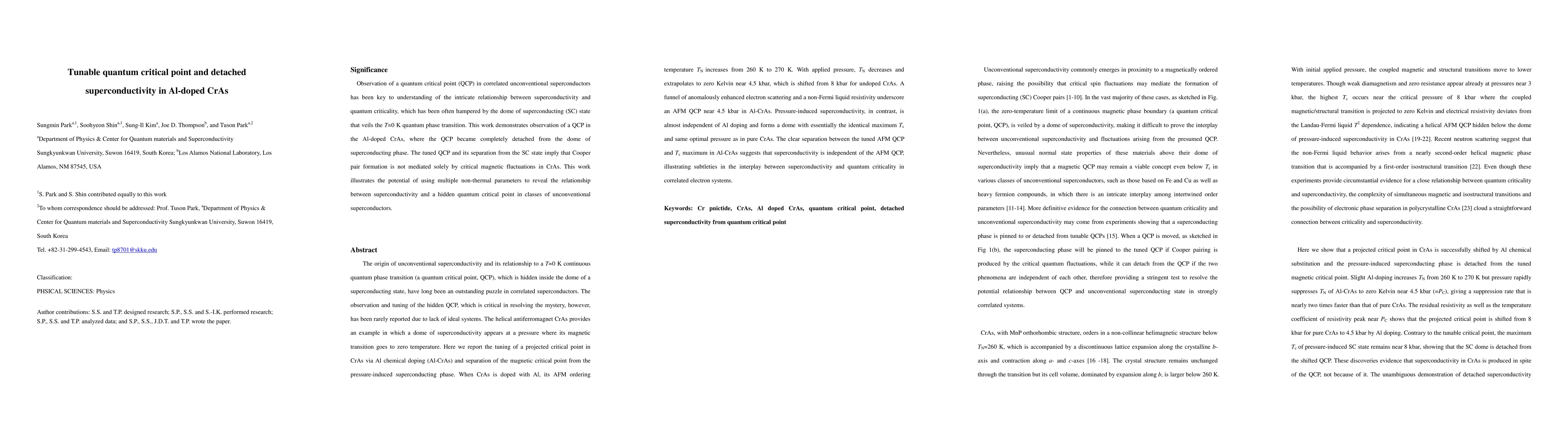 This paper reports on the tunable quantum critical point and detached superconductivity in Al-doped CrAs, revealing that superconductivity is independent of the antiferromagnetic quantum critical point, suggesting complex interactions between superconductivity and quantum criticality in correlated electron systems.