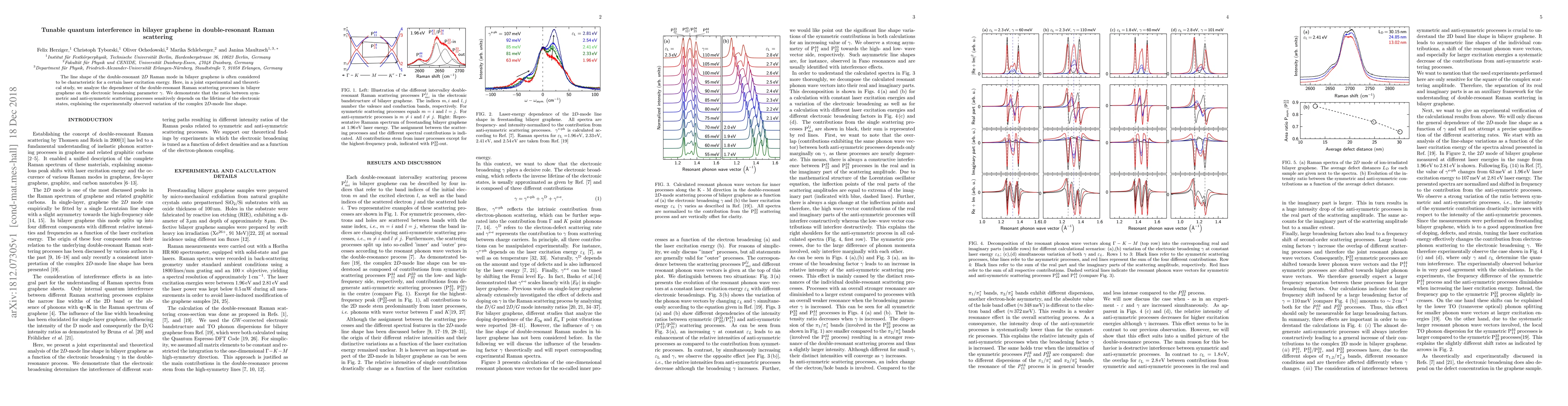 The line shape of the double-resonant $2D$ Raman mode in bilayer graphene is often considered to be characteristic for a certain laser excitation energy. Here, in a joint experimental and theoretical study, we analyze the dependence of the double-resonant Raman scattering processes in bilayer graphene on the electronic broadening parameter $\gamma$. We demonstrate that the ratio between symmetric and anti-symmetric scattering processes sensitively depends on the lifetime of the electronic states, explaining the experimentally observed variation of the complex $2D$-mode line shape.