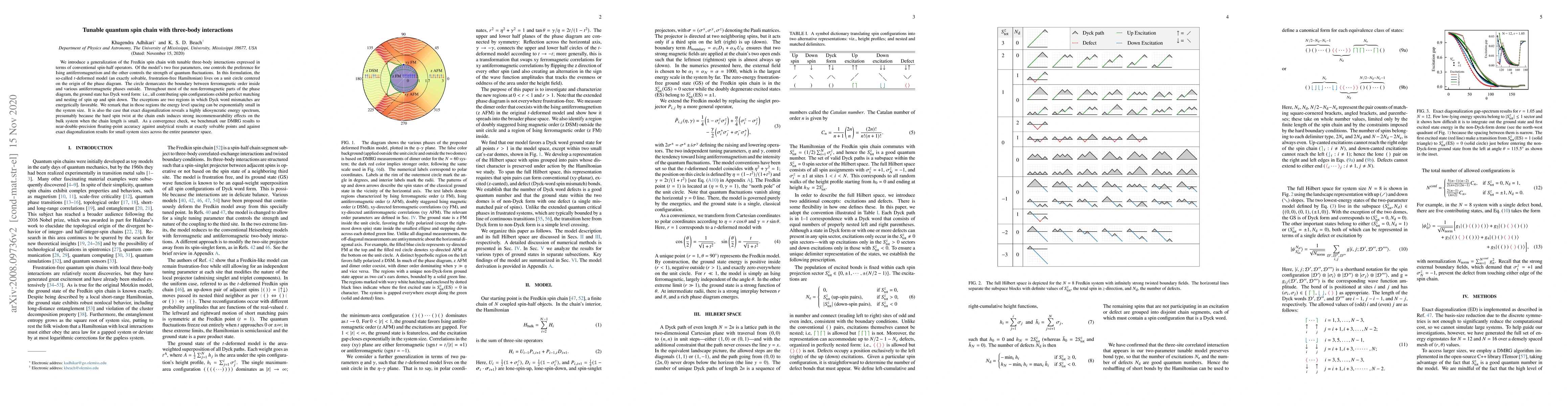 Researchers created a tunable quantum spin chain model with adjustable three-body interactions, revealing unique ground state properties and potential for exponential energy level spacing in certain regions of the phase diagram.