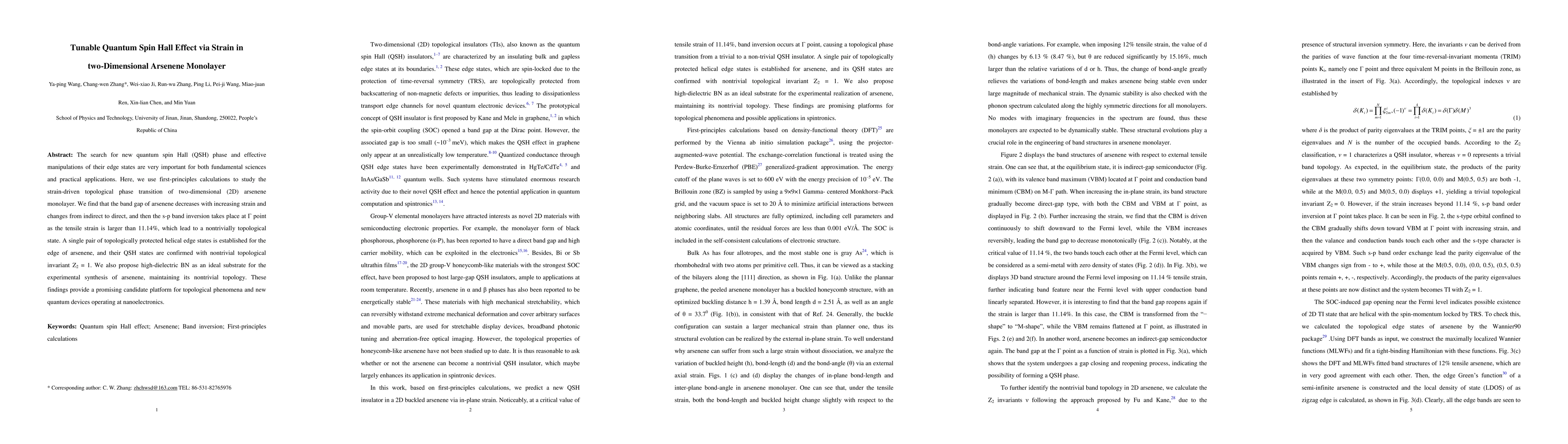 This paper investigates the strain-induced quantum spin Hall effect in two-dimensional arsenene monolayers, demonstrating that tensile strain can trigger a topological phase transition, resulting in a nontrivial topological state with protected helical edge states. High-dielectric BN is proposed as a suitable substrate to maintain this topological state for potential quantum device applications.