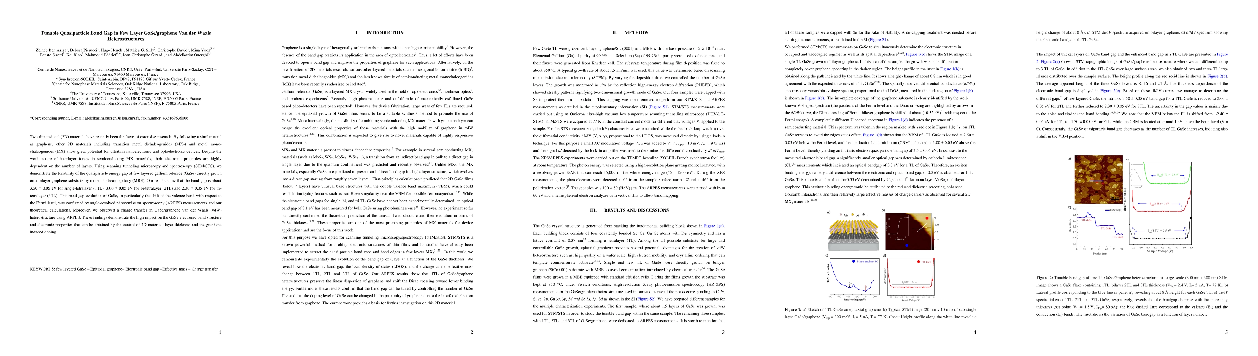 This paper demonstrates the tunability of the quasiparticle band gap in few-layer GaSe grown on graphene via molecular beam epitaxy, showing significant band gap variations with layer thickness. The study reveals a shift in the valence band due to graphene-induced doping, highlighting the potential for controlling electronic properties in 2D materials.