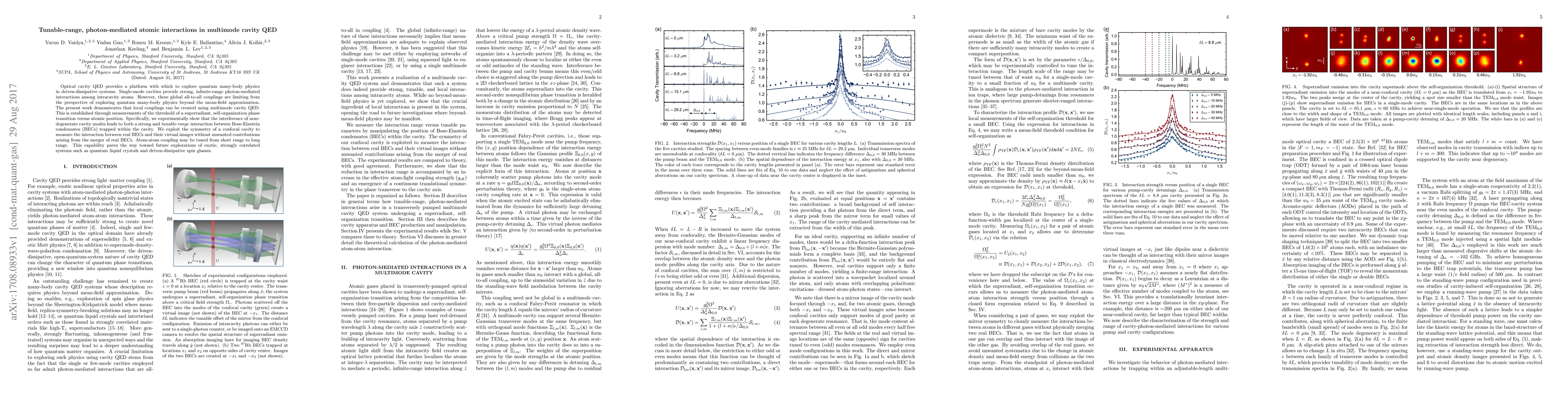 This paper explores tunable photon-mediated atomic interactions in multimode cavity QED, demonstrating local couplings through interference of near-degenerate cavity modes. The study shows a tunable range of interactions between Bose-Einstein condensates, enabling future research into strongly correlated quantum systems.