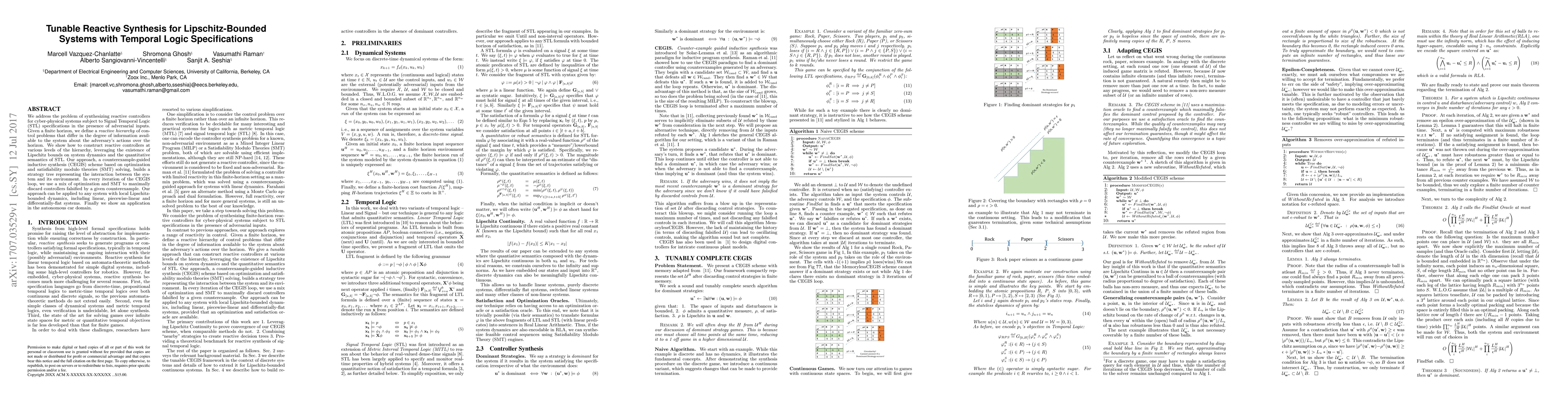 This paper presents a method for synthesizing reactive controllers for Lipschitz-bounded cyber-physical systems to meet Signal Temporal Logic specifications, using a CEGIS scheme that iteratively refines controllers based on counterexamples. The approach leverages optimization and SMT solving to handle adversarial inputs and is applicable to various system types, demonstrated through an autonomous car example.