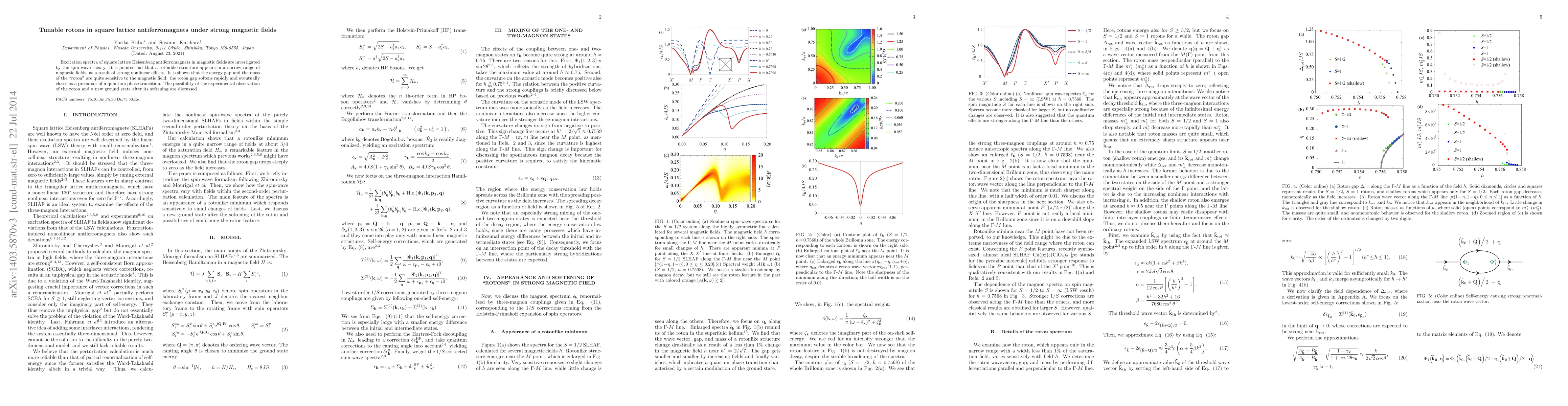 This paper investigates the excitation spectra of square lattice Heisenberg antiferromagnets under strong magnetic fields, revealing a rotonlike structure due to nonlinear effects. The study shows that the roton's energy gap and mass are highly sensitive to the magnetic field, softening and potentially closing as a precursor to a quantum phase transition.