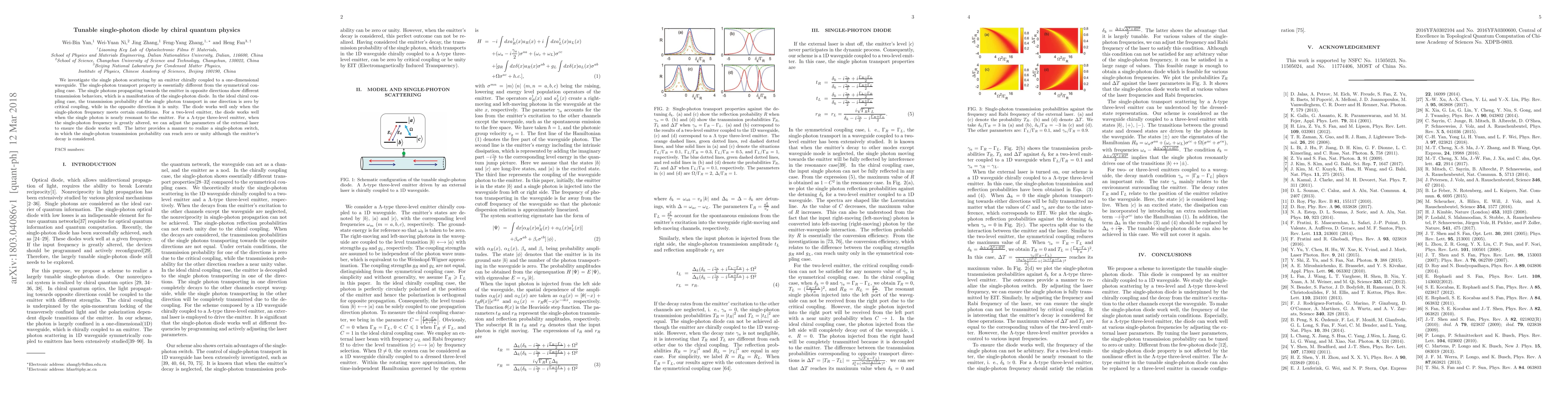 A single-photon diode is created through chiral quantum physics, showing distinct transmission behaviors for photons traveling in opposite directions, which can be controlled by adjusting the single-photon frequency.