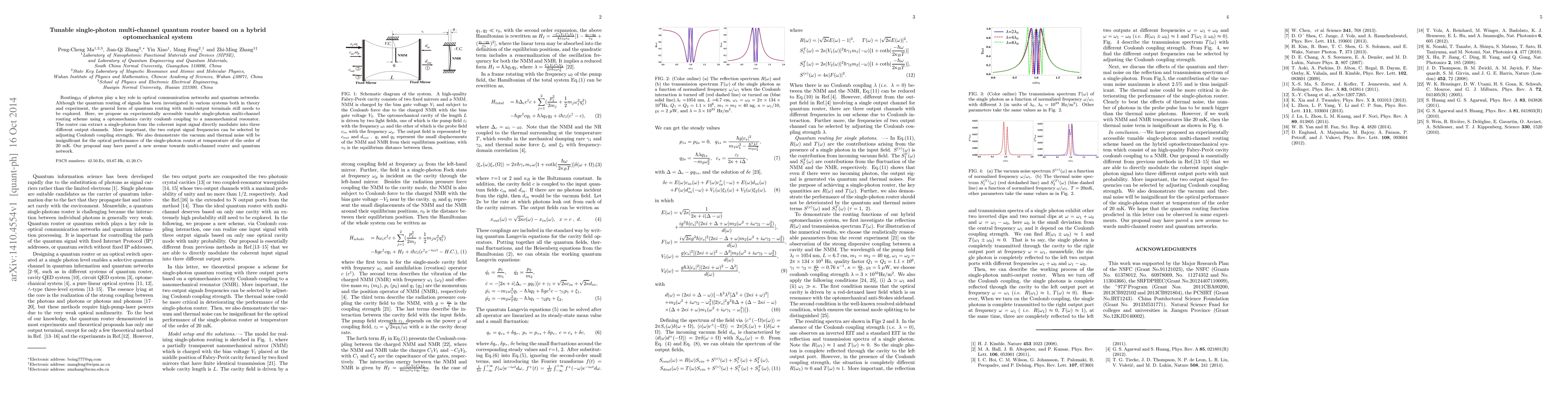 We proposed a hybrid optoelectromechanical system that enables tunable single-photon multi-channel routing.