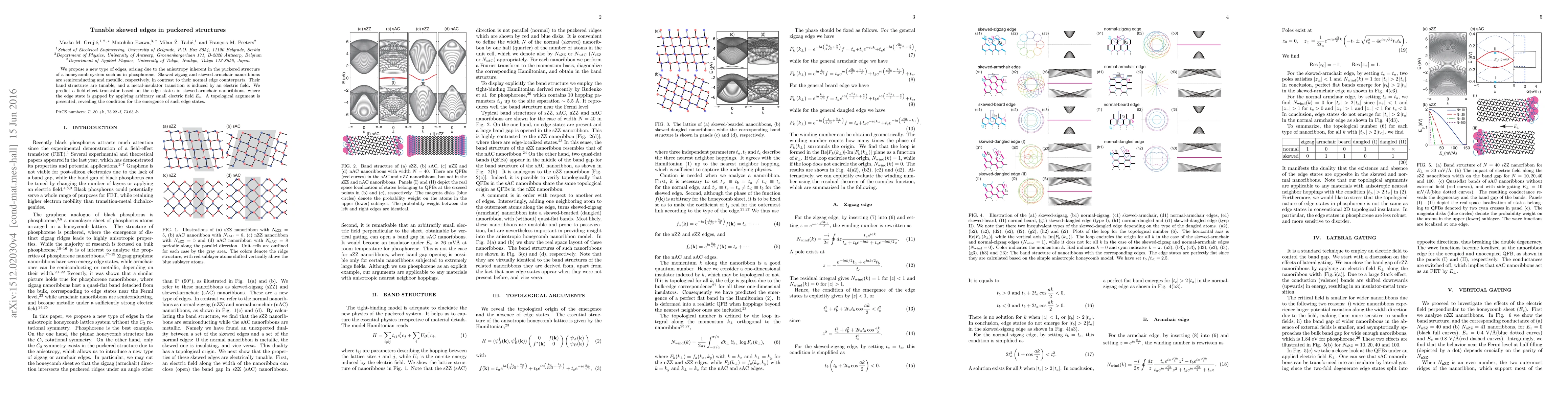 Researchers discovered tunable skewed edges in puckered structures like phosphorene, leading to new semiconducting and metallic nanoribbons with band structures that can be controlled by an electric field.