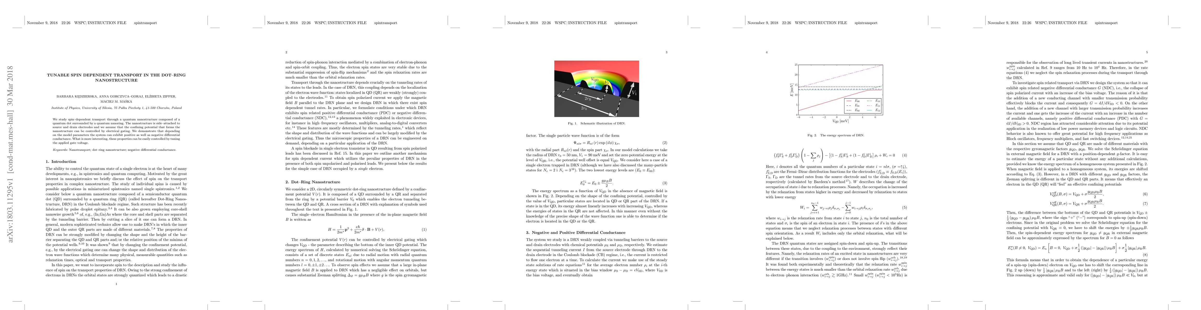 This paper investigates spin-dependent transport in a quantum dot-nanoring structure, showing tunable positive and negative differential conductance that can be controlled via applied gate voltage. The study highlights the potential for manipulating transport properties through electrical gating.