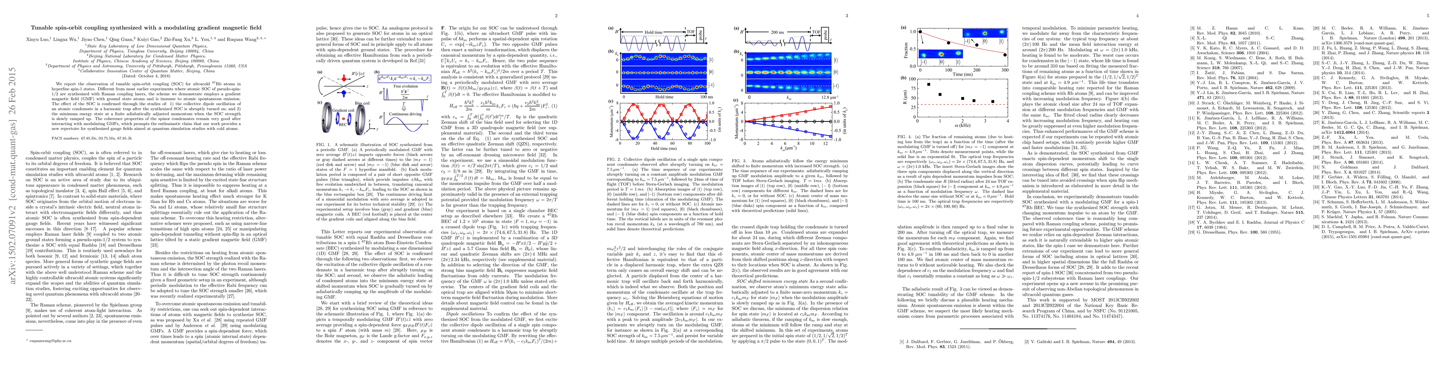 We report the observation of tunable spin-orbit coupling (SOC) for ultracold $^{87}$Rb atoms in hyperfine spin-1 states. Different from most earlier experiments where atomic SOC of pseudo-spin-1/2 are synthesized with Raman coupling lasers, the scheme we demonstrate employs a gradient magnetic field (GMF) with ground state atoms and is immune to atomic spontaneous emission. The effect of the SOC is confirmed through the studies of: 1) the collective dipole oscillation of an atomic condensate in a harmonic trap after the synthesized SOC is abruptly turned on; and 2) the minimum energy state at a finite adiabatically adjusted momentum when the SOC strength is slowly ramped up. The coherence properties of the spinor condensates remain very good after interacting with modulating GMFs, which prompts the enthusiastic claim that our work provides a new repertoire for synthesized gauge fields aimed at quantum simulation studies with cold atoms.