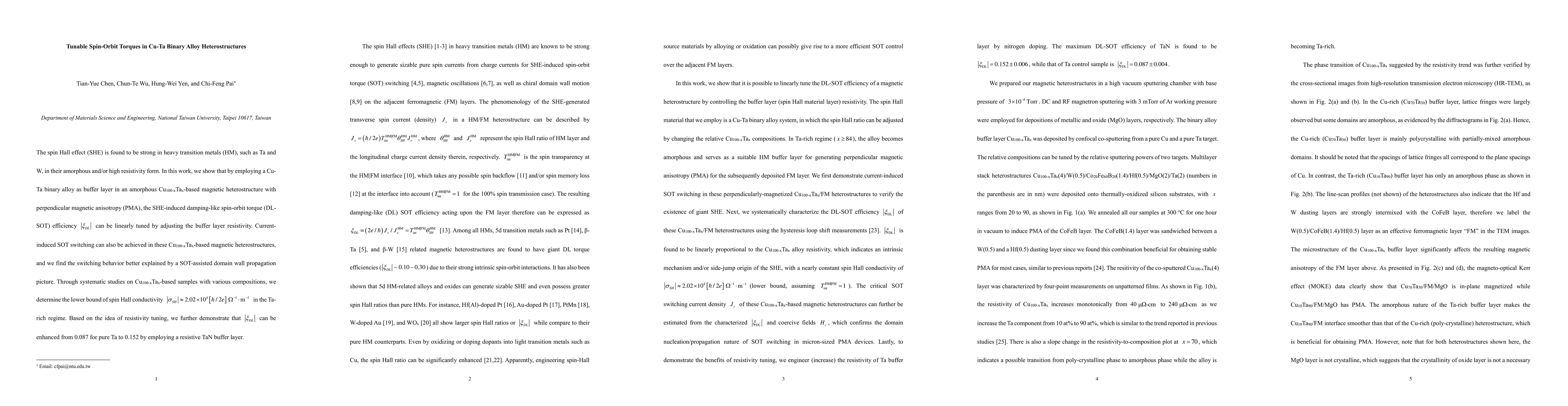 A Cu100-xTax-based magnetic heterostructure was fabricated using co-sputtering.