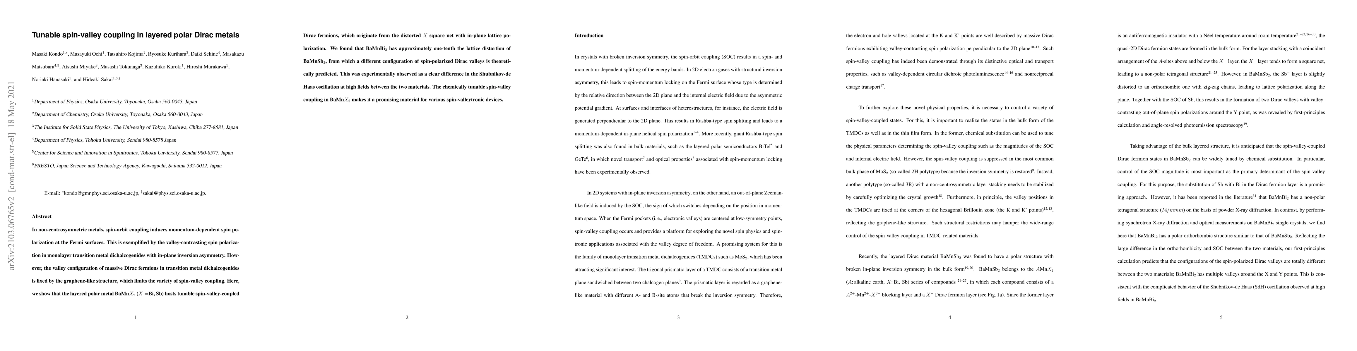 This paper demonstrates tunable spin-valley coupling in layered polar Dirac metals BaMn$X_2$ (where $X$ = Bi, Sb), revealing distinct spin-polarized Dirac valleys due to varying lattice distortions and experimentally confirming this through Shubnikov-de Haas oscillations. This tunable property suggests potential applications in spin-valleytronic devices.