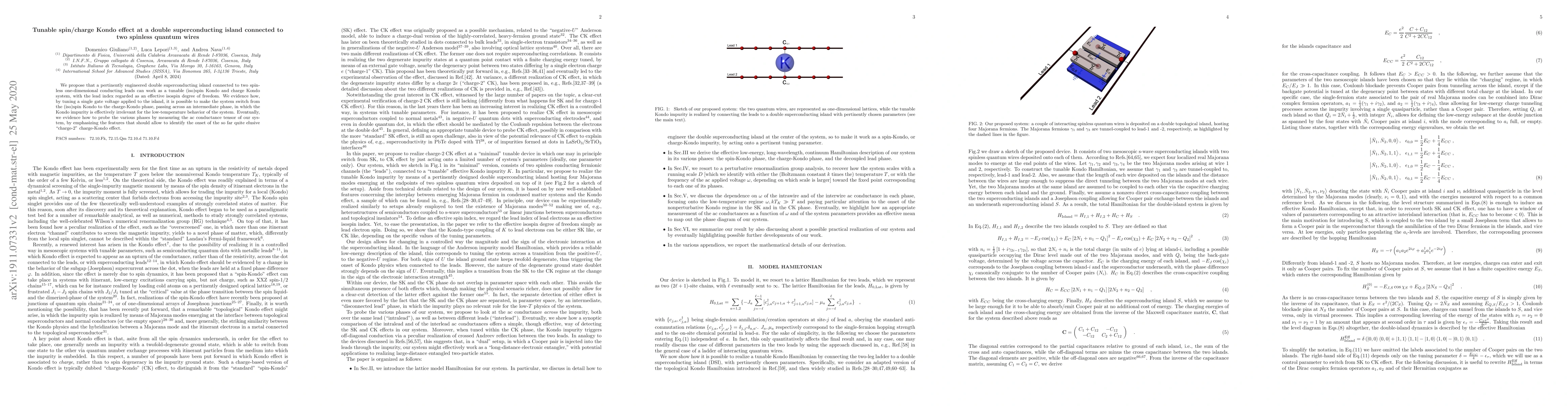Researchers propose a tunable Kondo effect system with a double superconducting island connected to two spinless quantum wires, demonstrating a phase transition between charge and spin Kondo effects.