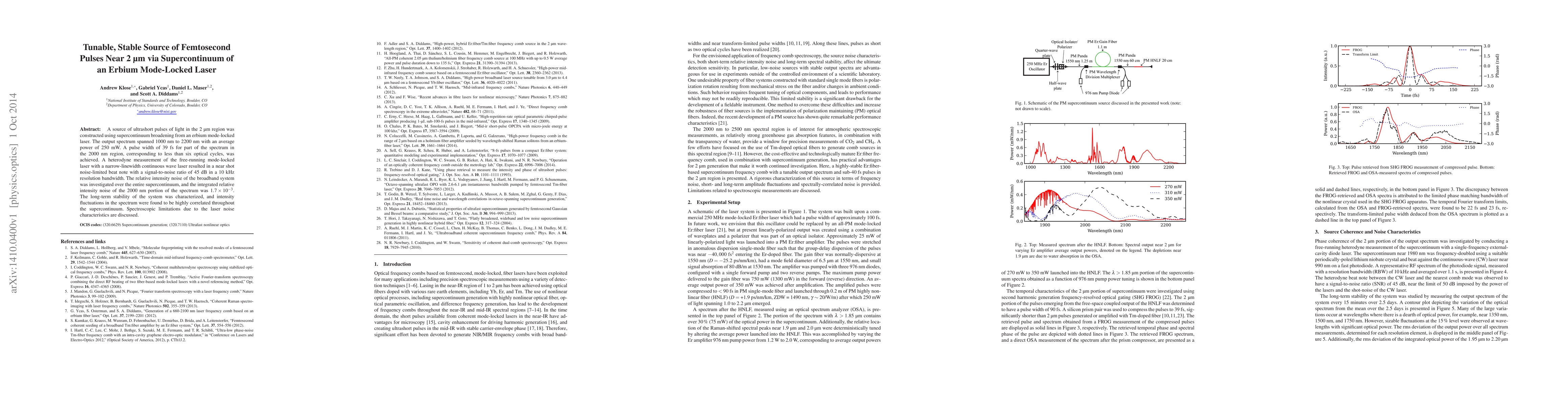 A source of ultrashort pulses of light in the 2 {\mu}m region was constructed using supercontinuum broadening from an erbium mode-locked laser. The output spectrum spanned 1000 nm to 2200 nm with an average power of 250 mW. A pulse width of 39 fs for part of the spectrum in the 2000 nm region, corresponding to less than six optical cycles, was achieved. A heterodyne measurement of the free-running mode-locked laser with a narrow-linewidth continuous wave laser resulted in a near shot noise-limited beat note with a signal-to-noise ratio of 45 dB in a 10 kHz resolution bandwidth. The relative intensity noise of the broadband system was investigated over the entire supercontinuum, and the integrated relative intensity noise of the 2000 nm portion of the spectrum was 0.0017. The long-term stability of the system was characterized, and intensity fluctuations in the spectrum were found to be highly correlated throughout the supercontinuum. Spectroscopic limitations due to the laser noise characteristics are discussed.