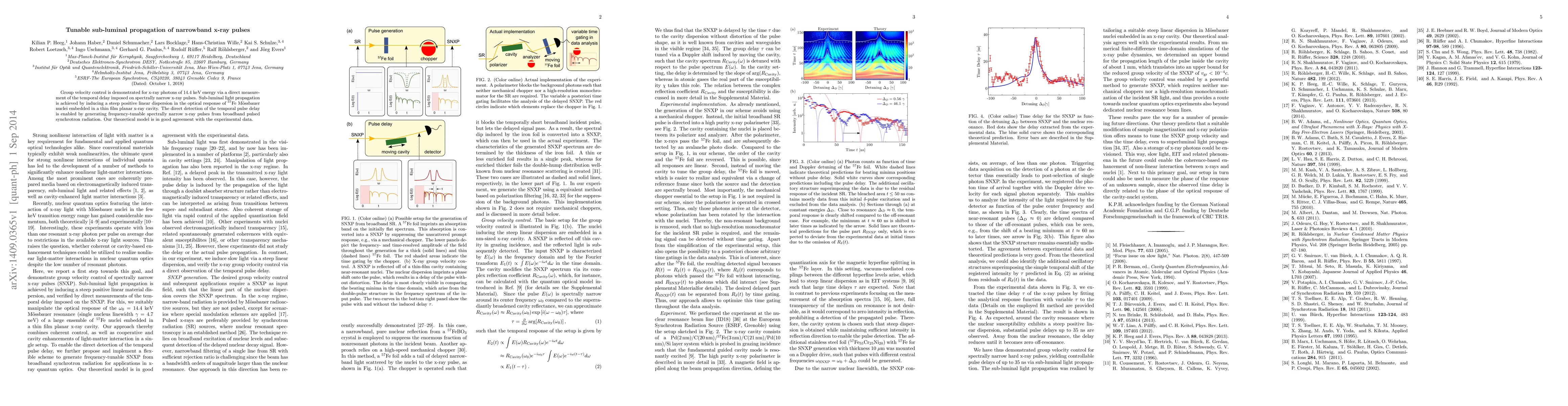 This research demonstrates control over the group velocity of 14.4 keV x-ray photons by inducing steep positive linear dispersion in the optical response of ${}^{57}$Fe Mössbauer nuclei, achieving sub-luminal propagation. The temporal delay of spectrally narrow x-ray pulses is directly measured, with theoretical models aligning well with experimental results.