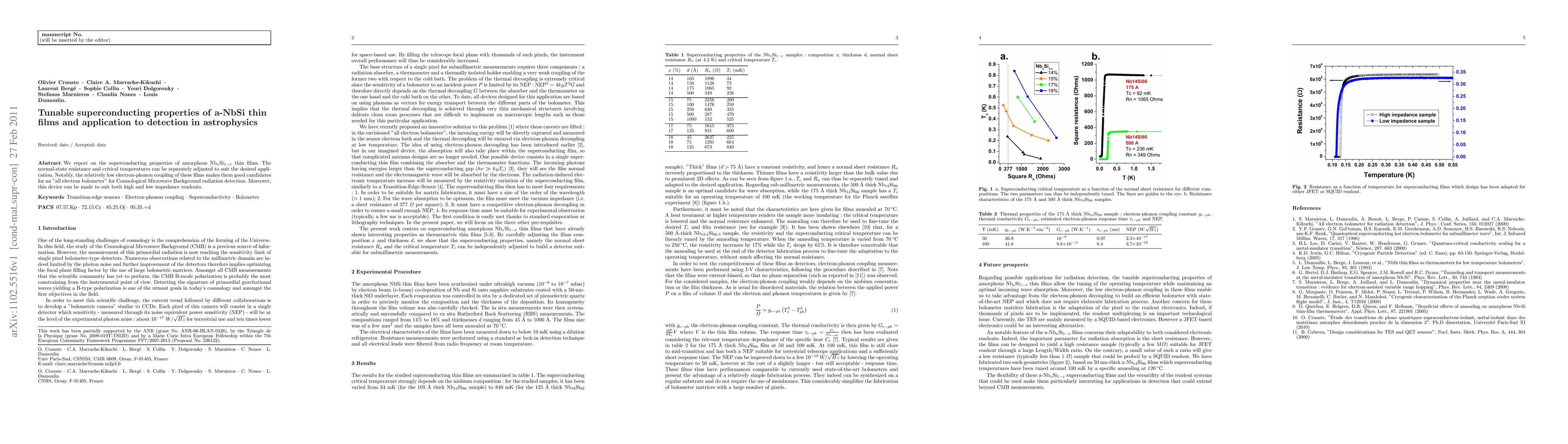 We report on the superconducting properties of amorphous NbxSi1-x thin films. The normal-state resistance and critical temperatures can be separately adjusted to suit the desired application. Notably, the relatively low electron-phonon coupling of these films makes them good candidates for an "all electron bolometer" for Cosmological Microwave Background radiation detection. Moreover, this device can be made to suit both high and low impedance readouts.