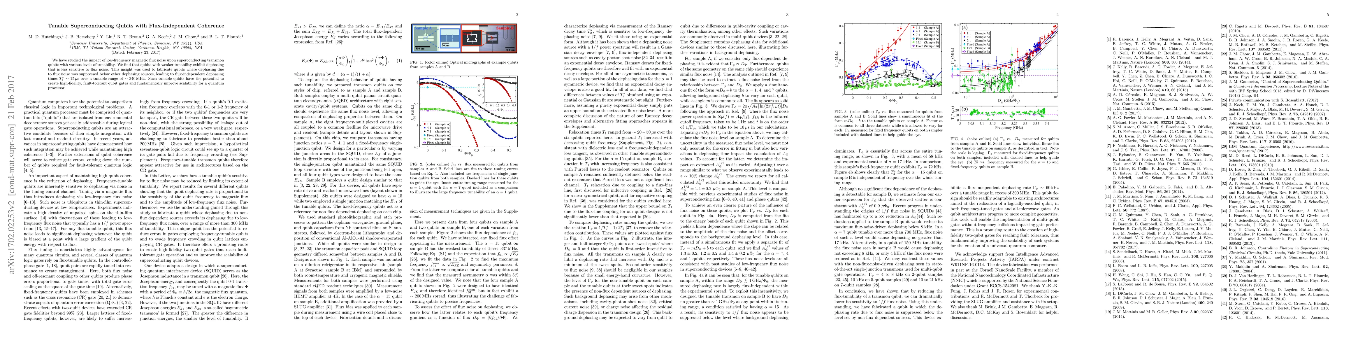 Summary: This study investigates how low-frequency magnetic flux noise affects superconducting transmon qubits of varying tunability, finding that less tunable qubits show reduced flux noise sensitivity. The researchers engineered qubits with suppressed flux noise-induced dephasing, achieving flux-independent coherence times T2* of ~15 us over a tunable range of ~340 MHz, which could enhance qubit gate fidelity and scalability for quantum processors.