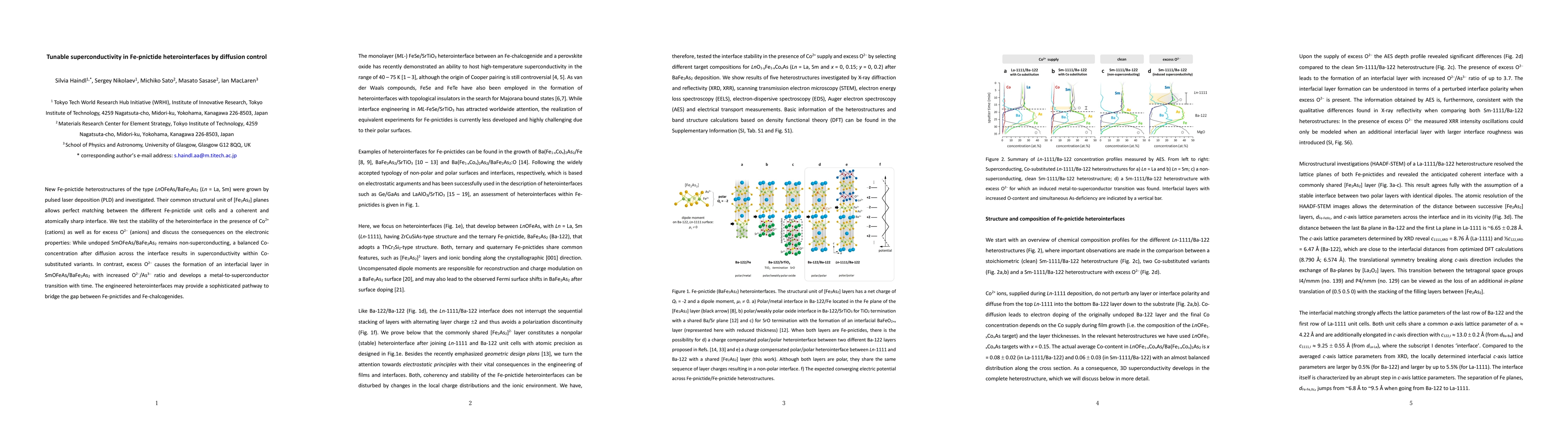 This study investigates Fe-pnictide heterostructures grown via pulsed laser deposition, revealing that controlled diffusion of Co$^{2+}$ across the interface induces superconductivity, while excess O$^{2-}$ leads to a metal-to-superconductor transition over time, demonstrating the potential of heterointerfaces for tuning superconductivity.