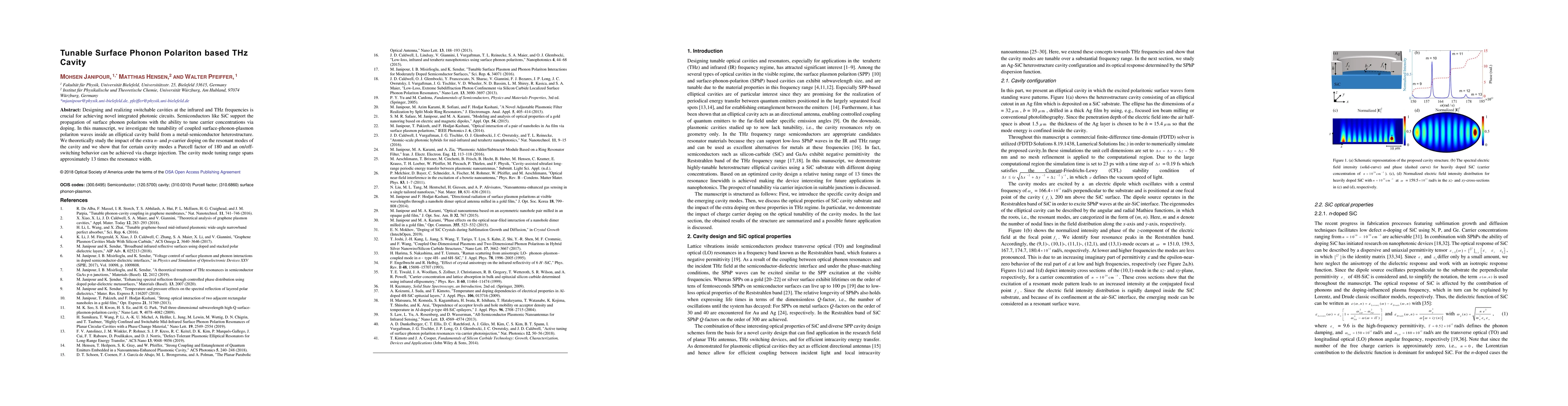 This paper explores tunable THz cavities using surface phonon polaritons in a metal-semiconductor heterostructure. The study demonstrates significant tunability and on/off switching behavior in cavity modes through n- and p-carrier doping, achieving a Purcell factor of 180 and a tuning range 13 times the resonance width.