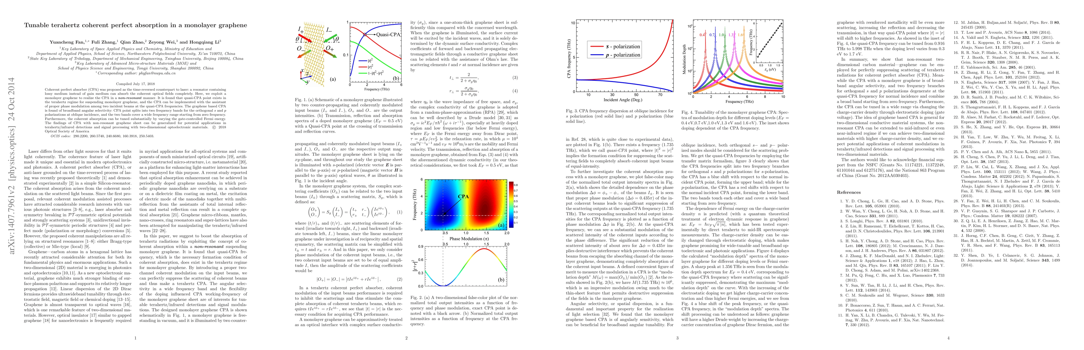 This paper demonstrates a tunable terahertz coherent perfect absorption (CPA) using a monolayer graphene, achieving non-resonant CPA through phase modulation. The graphene-based CPA exhibits broadband angular selectivity and can be significantly tuned by adjusting the Fermi energy, indicating potential applications in terahertz/infrared detection and signal processing.
