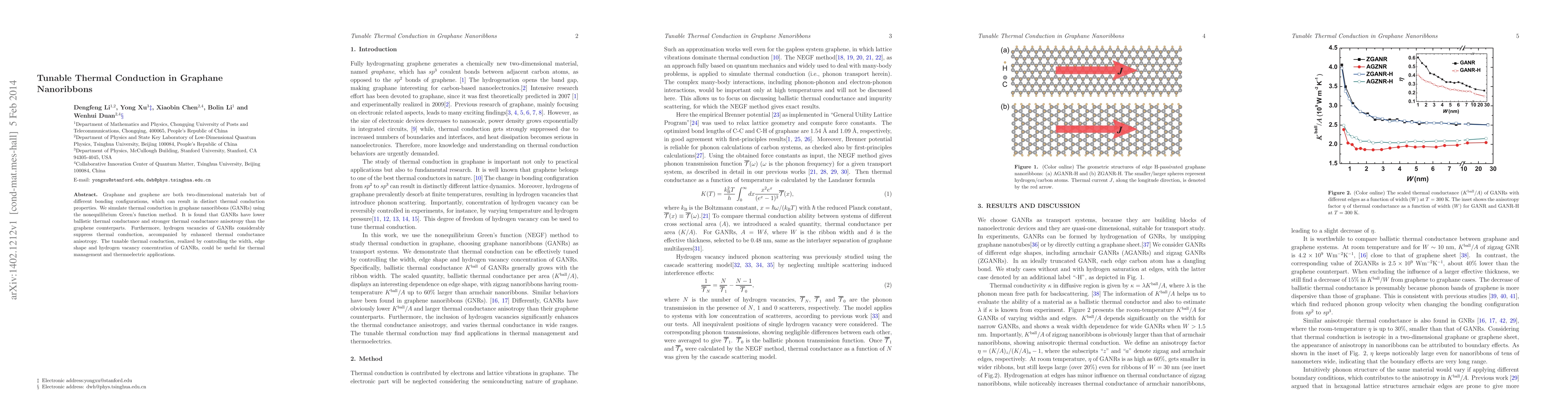 Summary: This study simulates thermal conduction in graphane nanoribbons, revealing they have lower thermal conductance and greater anisotropy compared to graphene. Hydrogen vacancies further suppress thermal conduction and enhance anisotropy, offering tunable thermal properties useful for thermal management and thermoelectric applications.