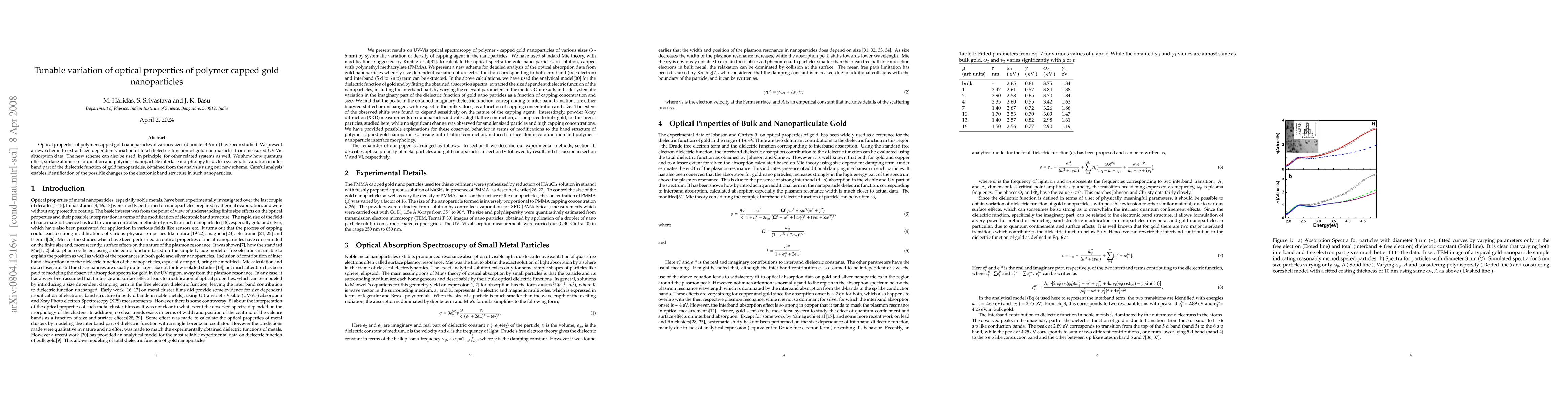 This paper investigates the optical properties of polymer-capped gold nanoparticles, revealing size-dependent variations in their dielectric function. A novel method is introduced to extract these variations from UV-Vis absorption data, highlighting the influence of quantum effects, surface coordination, and interface morphology on the nanoparticles' interband dielectric function.